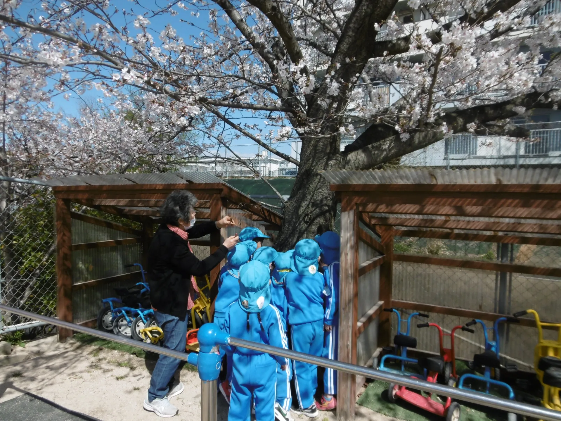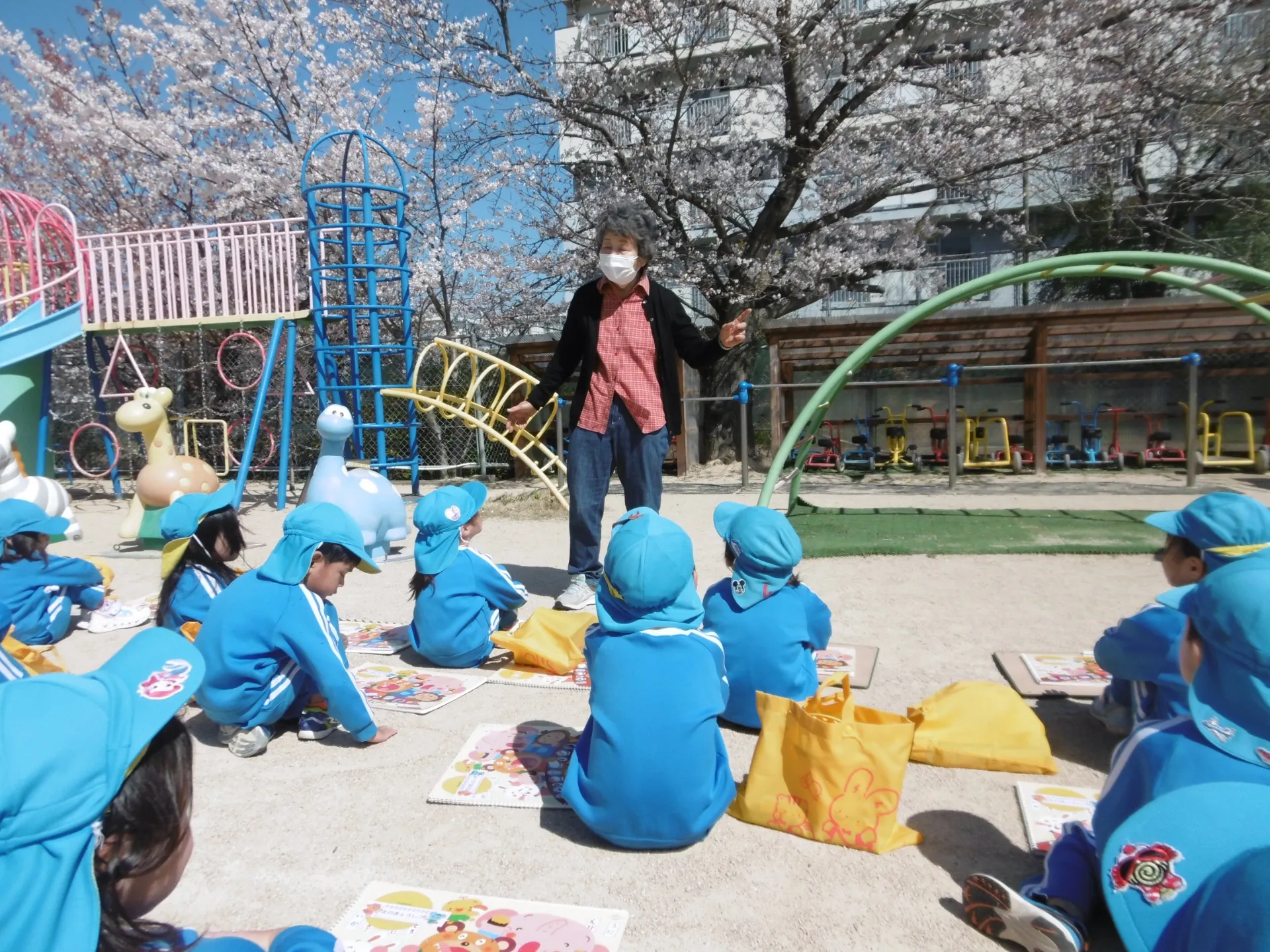 初めての絵の教室は、お天気も良く桜が満開だったので外での教室になりました!