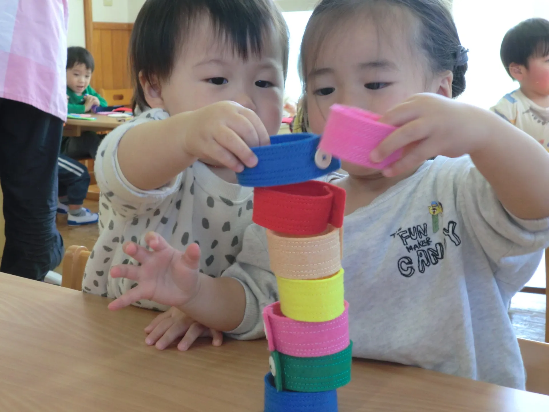 4月はいろんな遊びを体験しました。折り紙、絵の具、クレパスでのびのびと描く姿は真剣そのものでした。お友だちと一緒に協力しながら遊び喜んでいる姿も多くなりました。たくさんのことを体験させていきたいと思います。