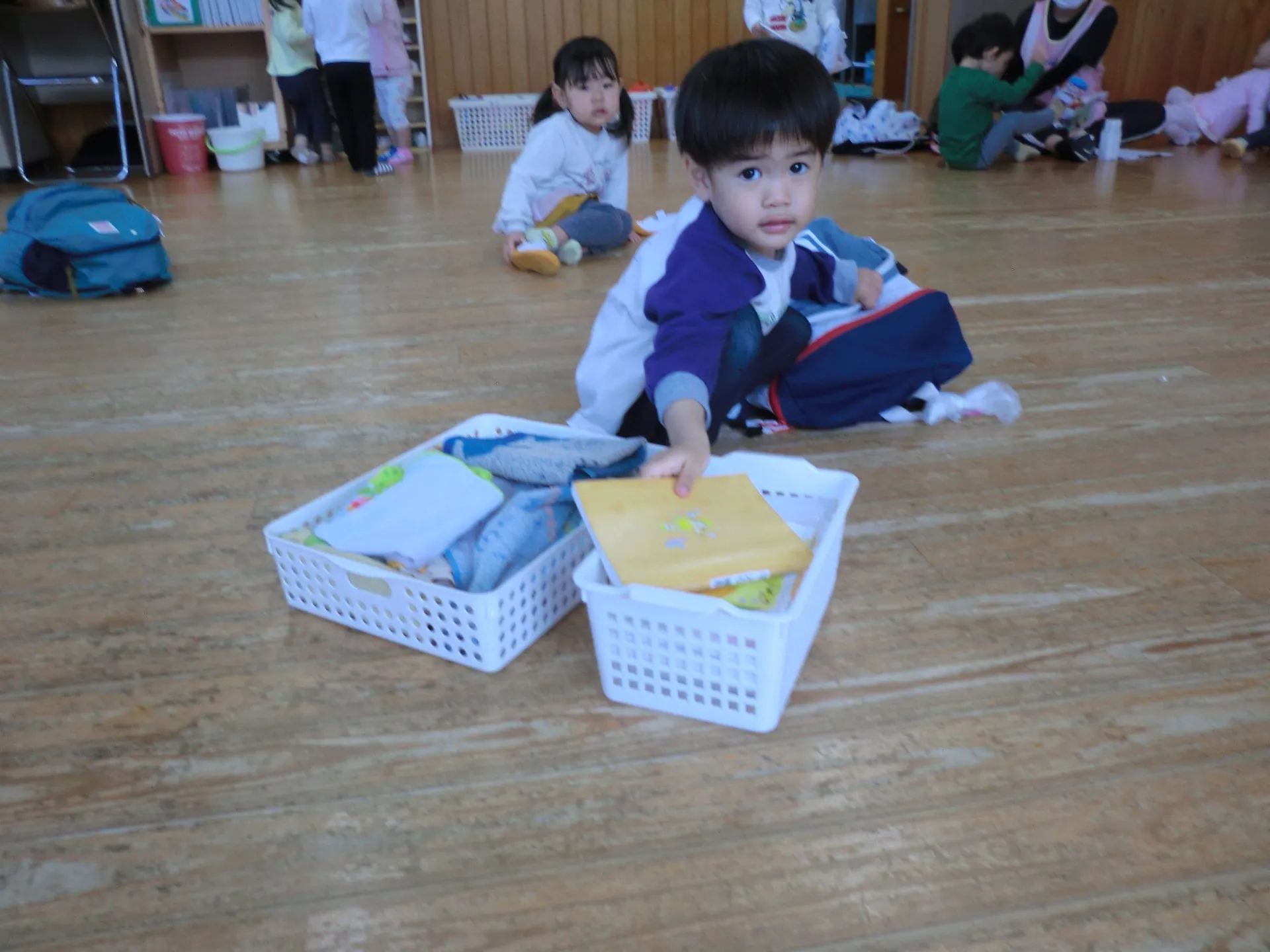 朝、お部屋に入ると自分のカバンから、おたより帳 おしぼりを出し、カバンを片づけシューズを履くという生活の流れが出来ています💖