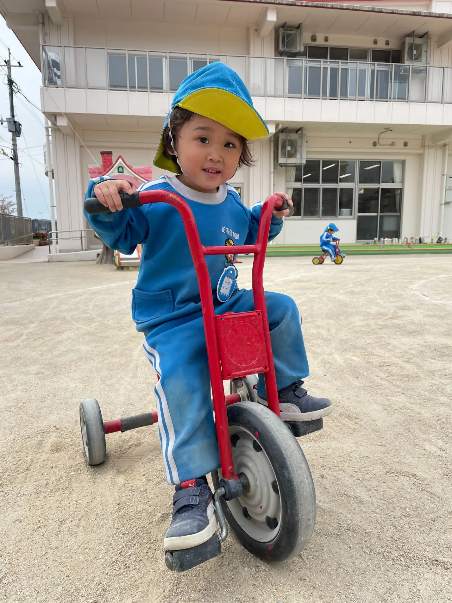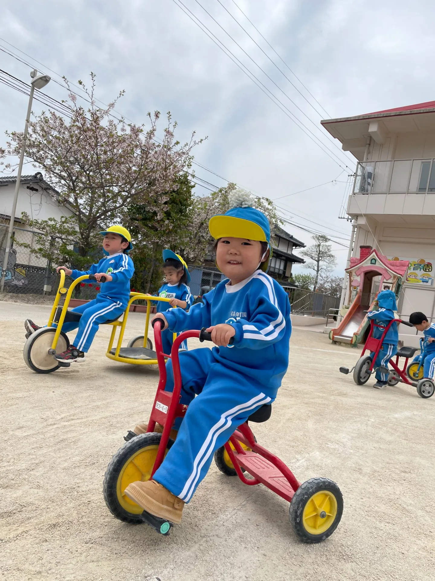 園庭で初めての自転車遊びをしました!一人でスイスイ漕ぐことができていたお友だちや漕ぐのが難しいお友だちはA組さんやB組さんの後ろに乗せてもらって楽しむ姿が見られました😄これからどんどん暑くなっていくので水分補給をこまめにとりながら戸外遊びを楽しんでいきたいと思います♪