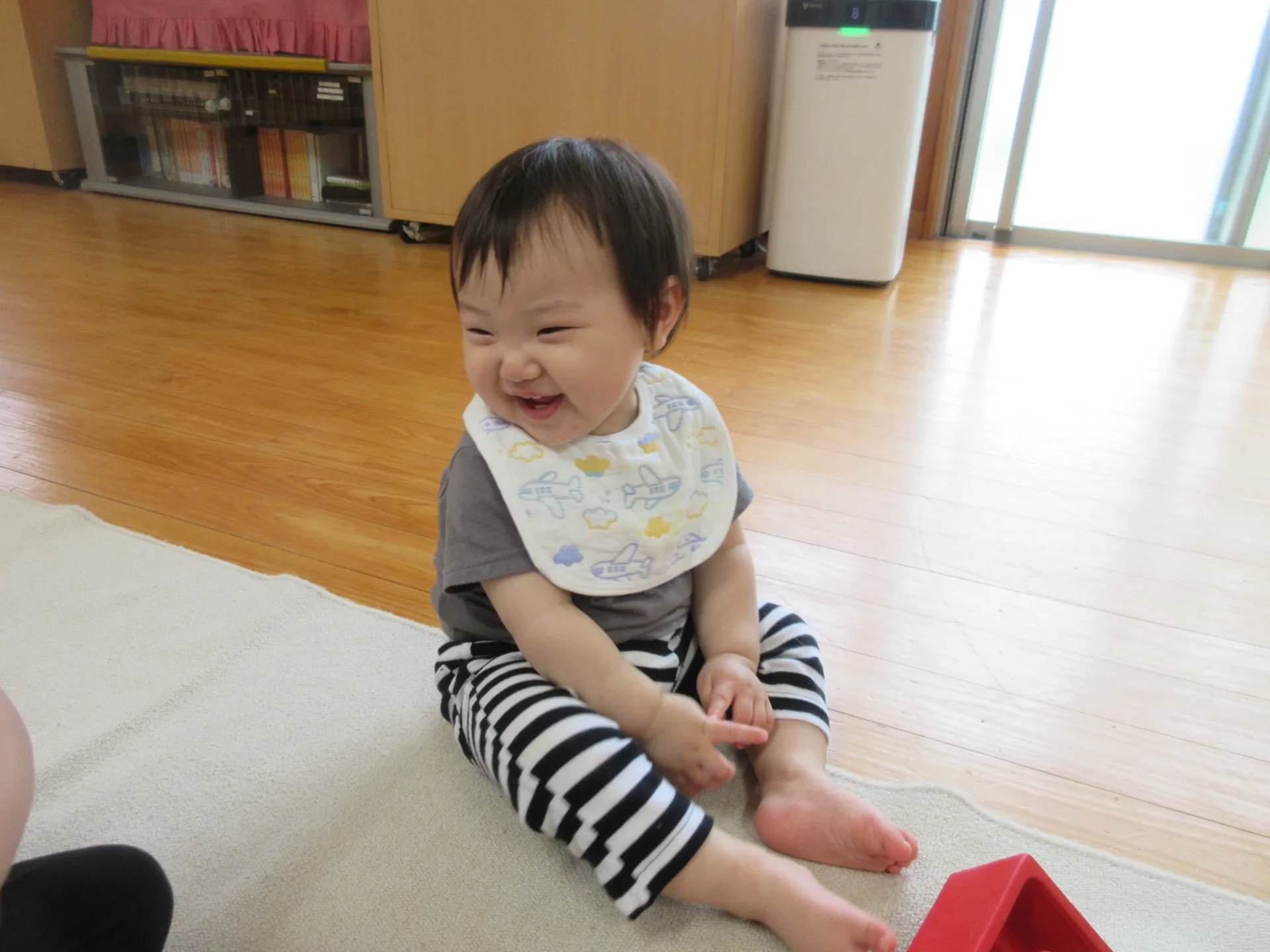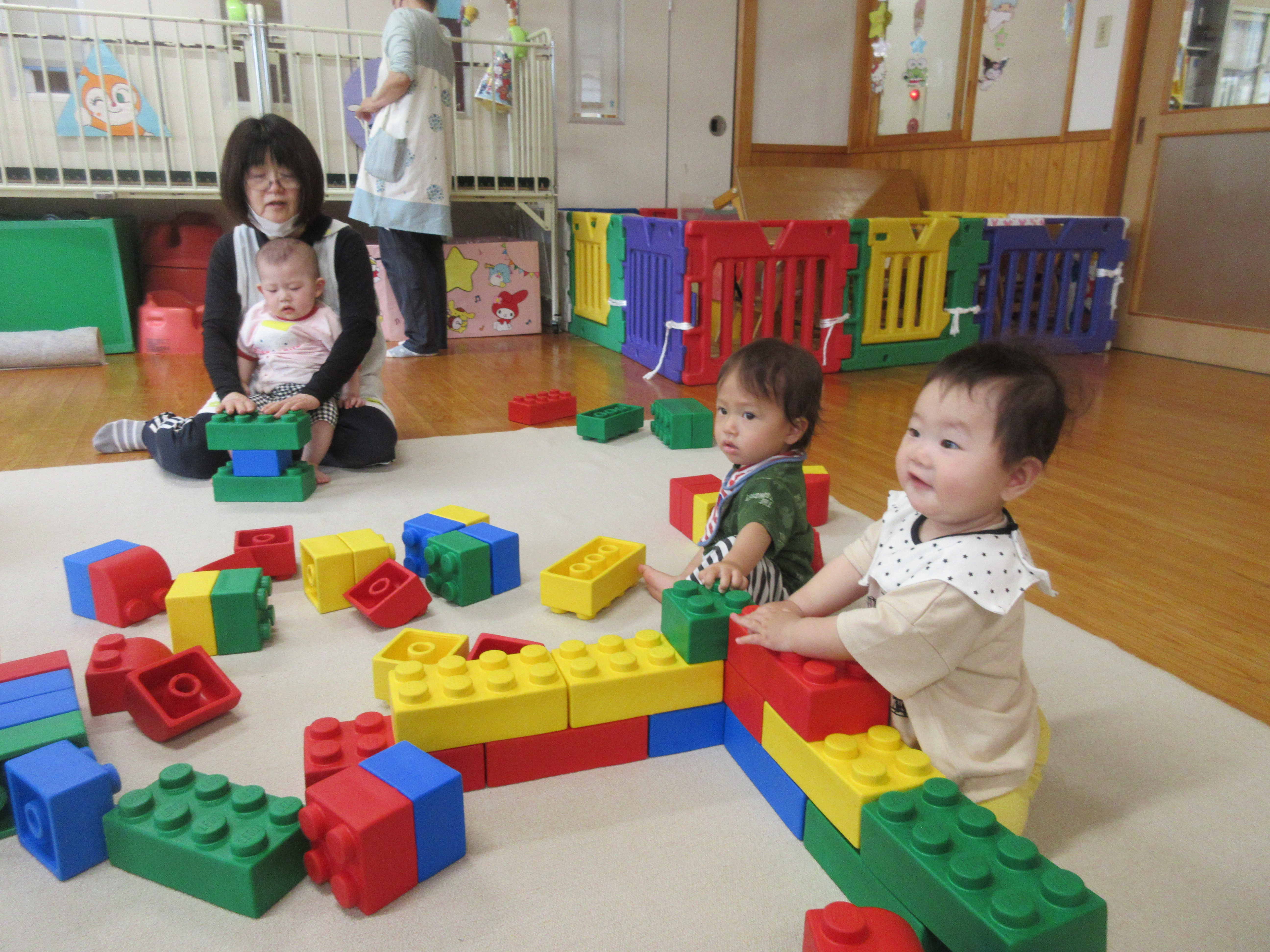☔じめじめと暑い梅雨の季節となりました。お外で遊べないお友だちが、お部屋でも体を動かして発散できるように、「大型レゴブロック」・「カラーボール」遊びなどを取り入れてみました。歩けるようになったり、這い這いで移動できるようになり行動範囲も広くなりました✨✨大型ブロックでは、先生と一緒に積み立てたり、お風呂やお家を作り見立て遊びをしたり、カラーボールでは箱にお友だちと一緒に入れたり、手作り缶に入れたり、手を入れて出したりと楽しんで遊ぶ姿がみられました😊🎶