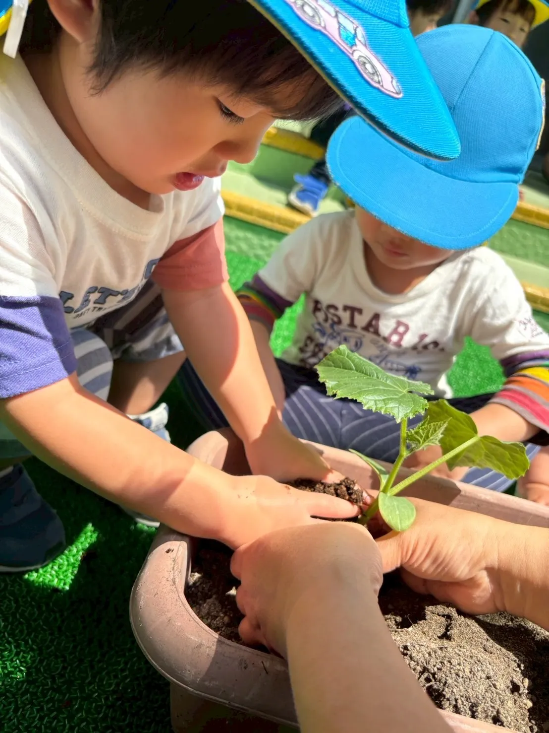 優しく…優しく…そーっと。植えたら土のお布団をそっと掛けて♡上手に植える事が出来ました!