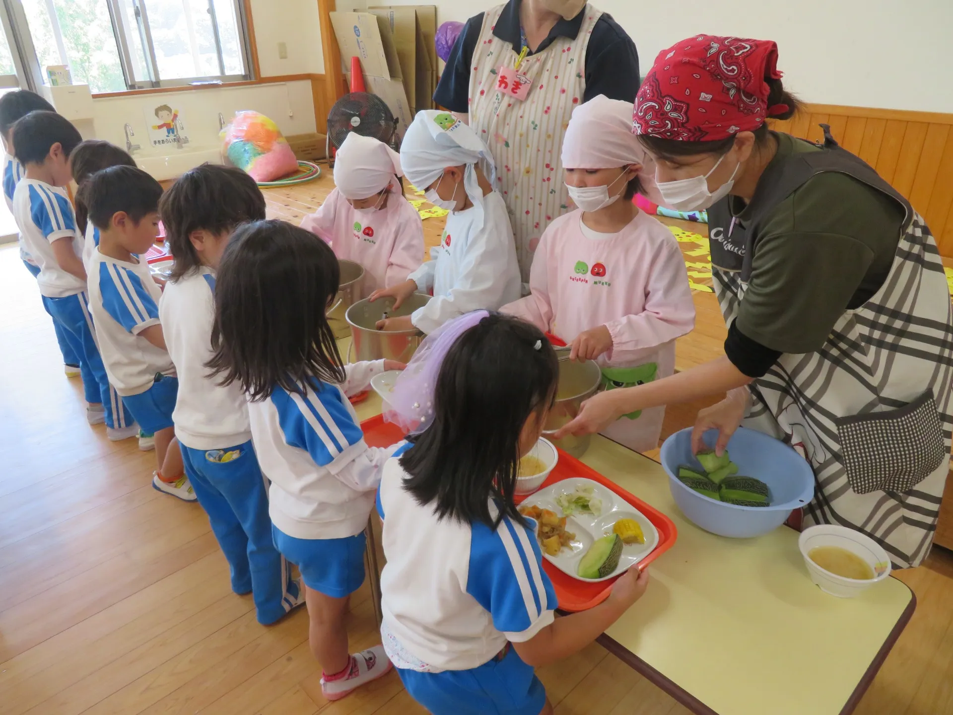 A組★給食配膳始まりました♪