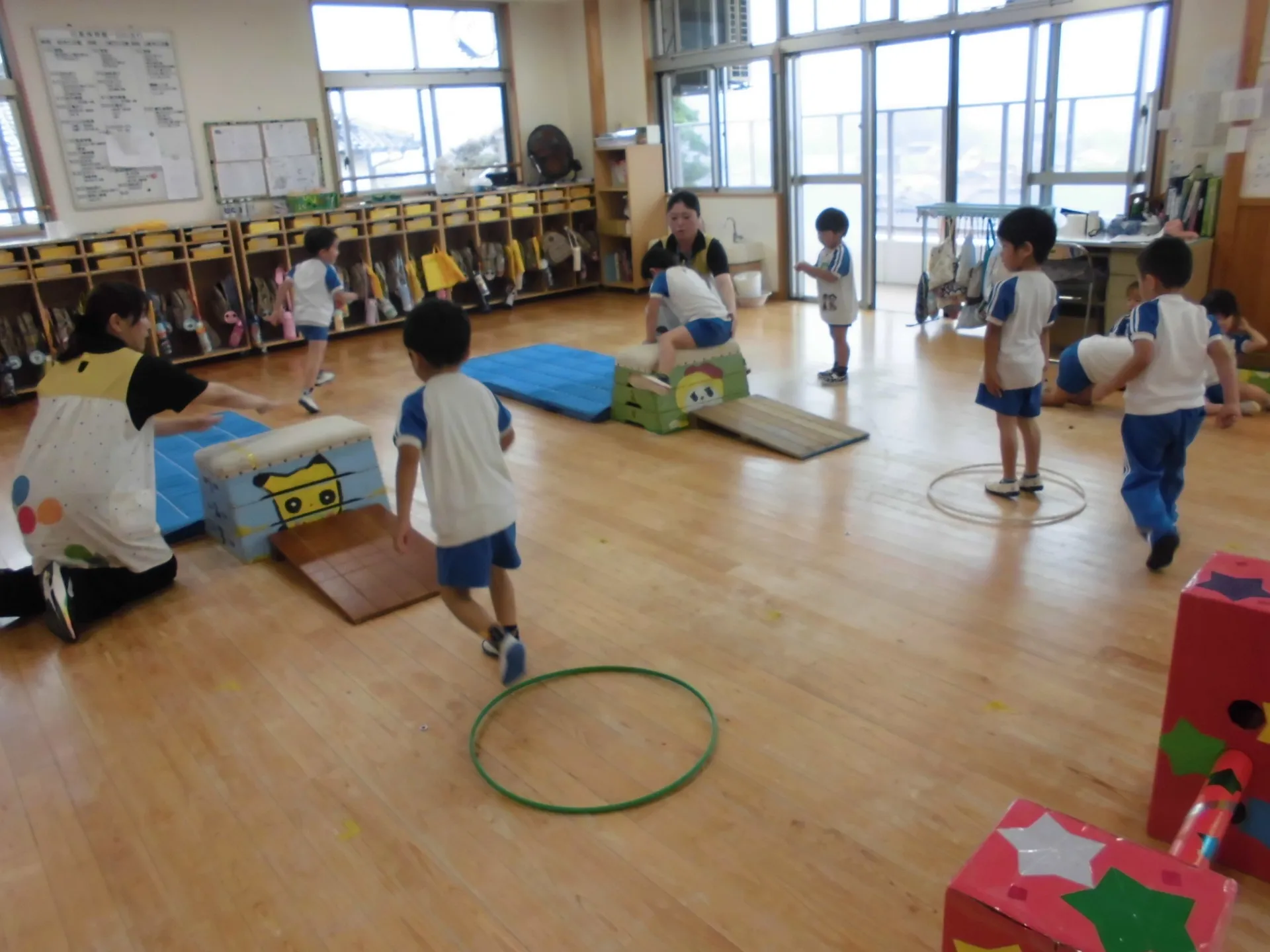 サーキット競技の練習をしました!マットをゴロゴロし、網をくぐって、スラロームをして、ハードルを跳んで、最後は跳び箱を跳んでゴールです✨初めてでしたがみんな上手にやりこなしていました😊ヤル気満々です!!これからお遊戯、リレーの練習も始まります♪子ども達のヤル気を大事にしながら練習を進めていきたいと思います🚩本番は元気いっぱい頑張ってくれると思いますので、どうぞお楽しみに😆