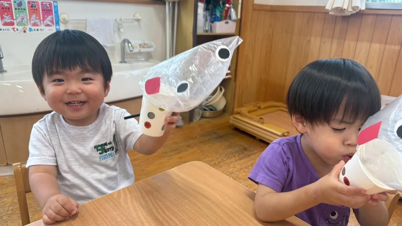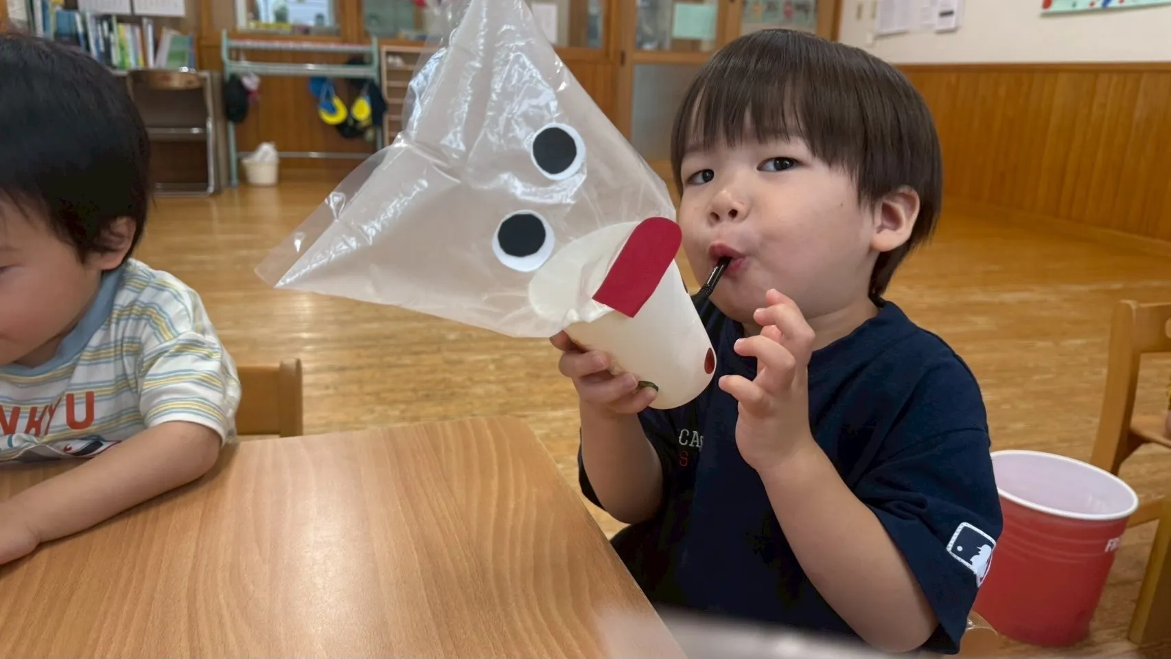 そんな中でも晴れた日はテラスでシャボン玉飛ばしをしたり、雨でも楽しめるように紙コップのおばけ作りをしました