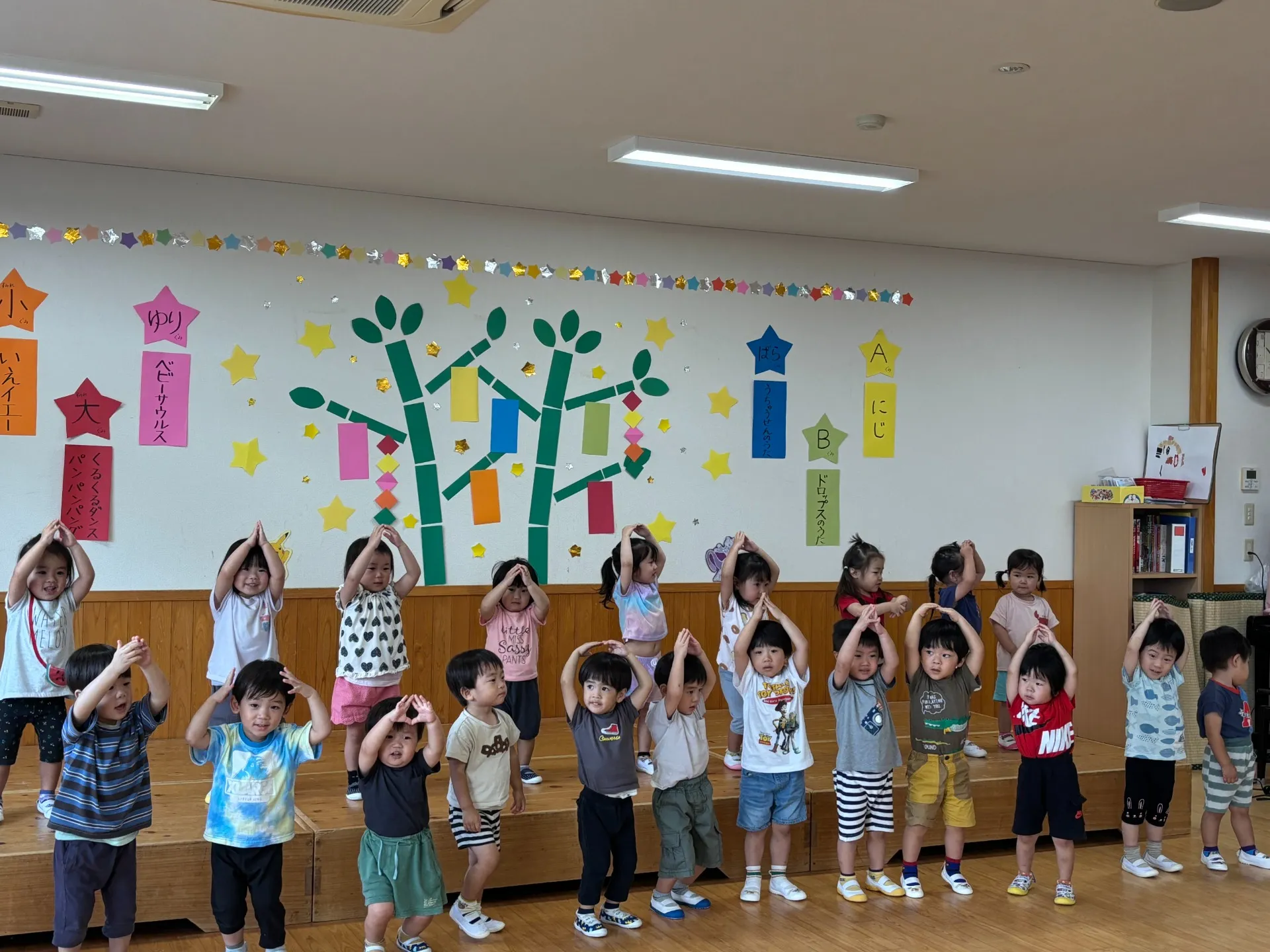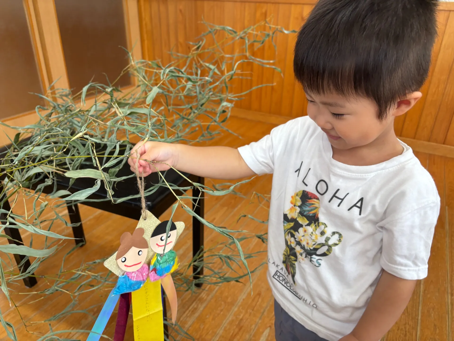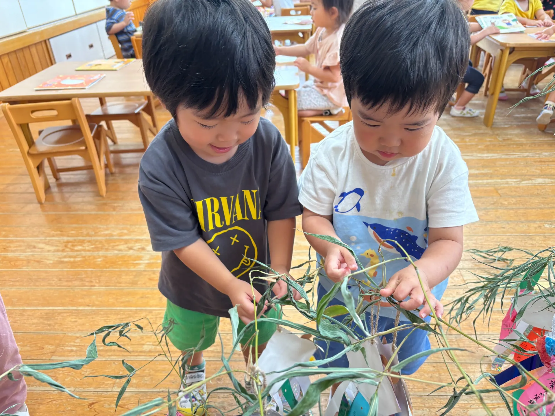 先日4日(金)に笹飾り、7日(月)の七夕集会ではベビーサウルスを踊りました♪