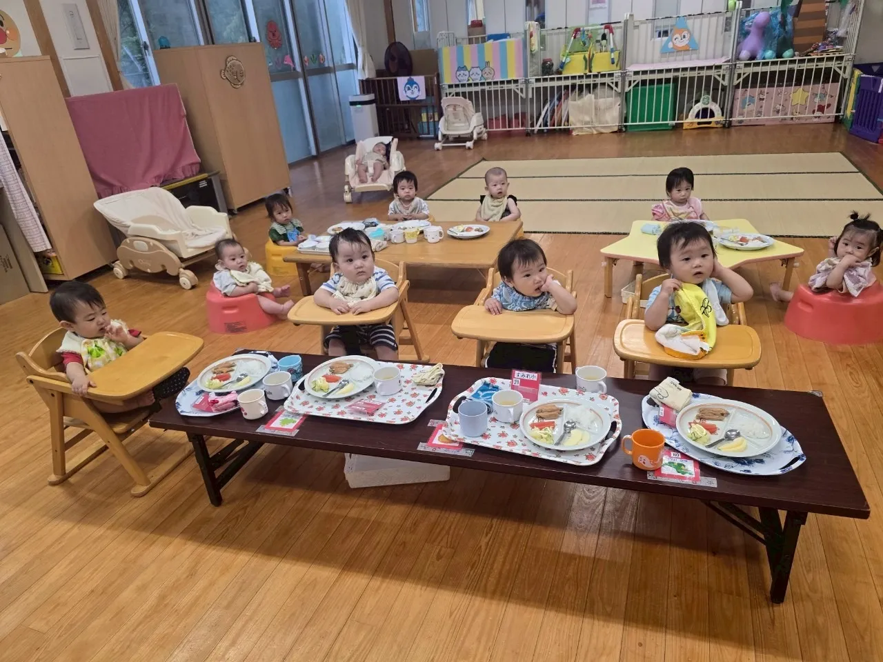 先日の運動会では、すみれ小組さんらしく、とてもかわいかったですね💖親子で一緒に楽しめて本当に良かったです。 今月より食事の移行をしました。ほとんどのお友だちが普通食になったり、牛乳もおいしそうに飲んでくれています。8月は、水遊びを予定しています。天候や体調を考慮しながら、楽しんでいきたいと思います。前日の体調などをお知らせくださいね。 お盆など長期お休みのお友だちもいますので、ケガや熱中症など十分に気をつけて下さいね。今月も元気いっぱいに過ごしていきたいと思います💞