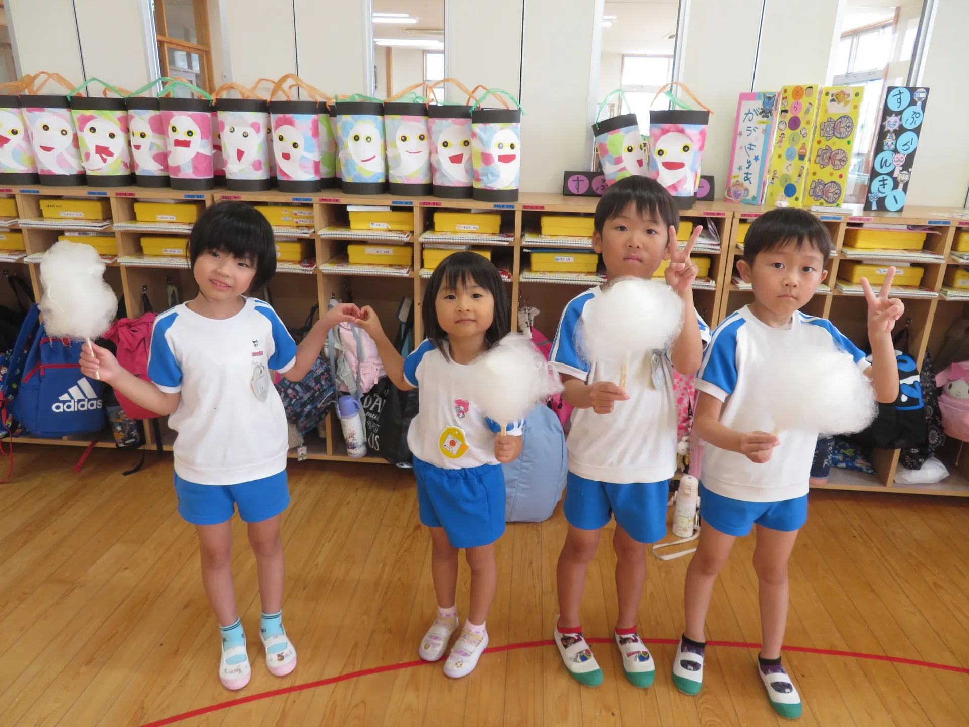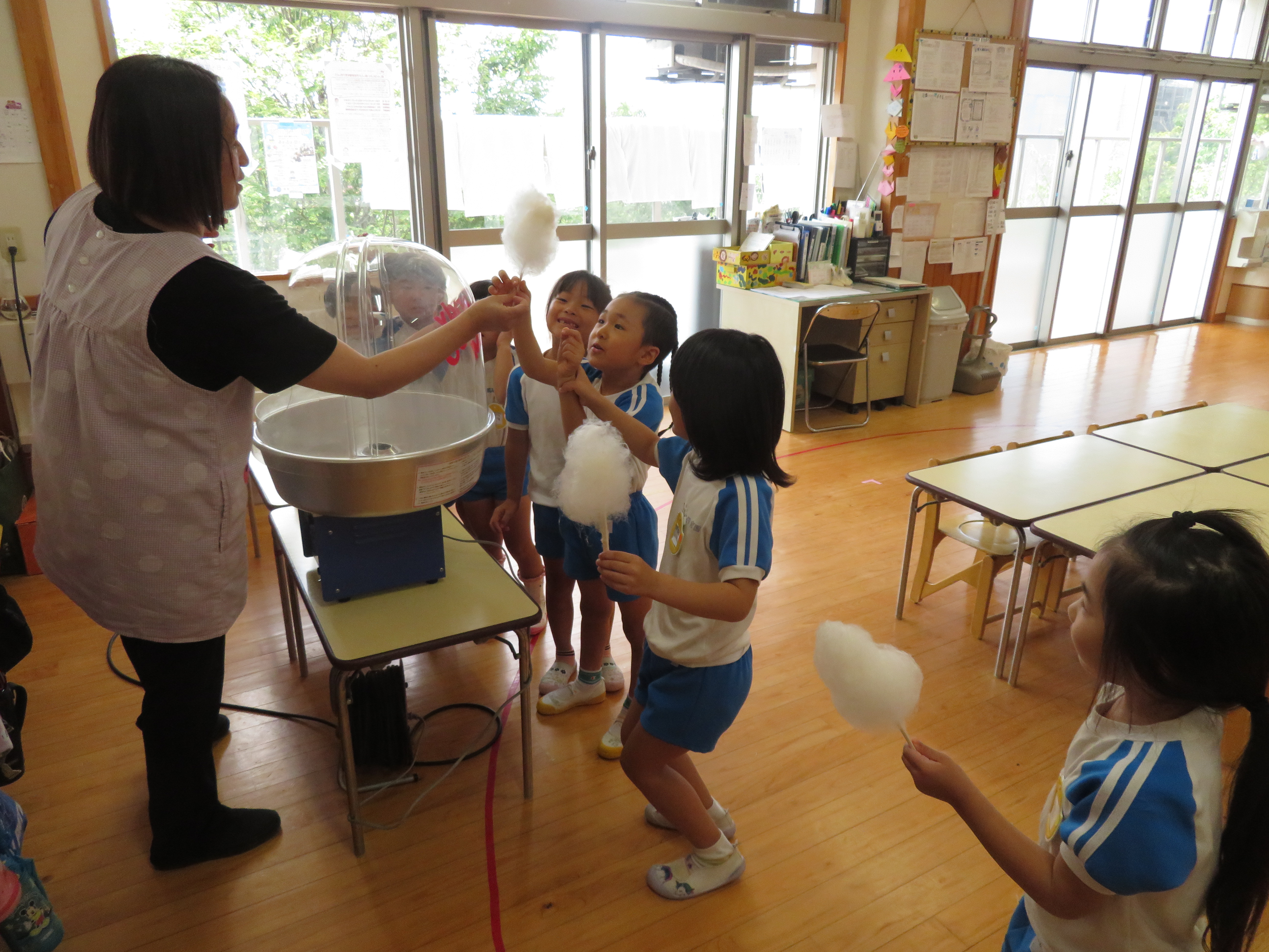 午前中は、縁日バック作り・スライム作り・綿菓子を食べました🎵