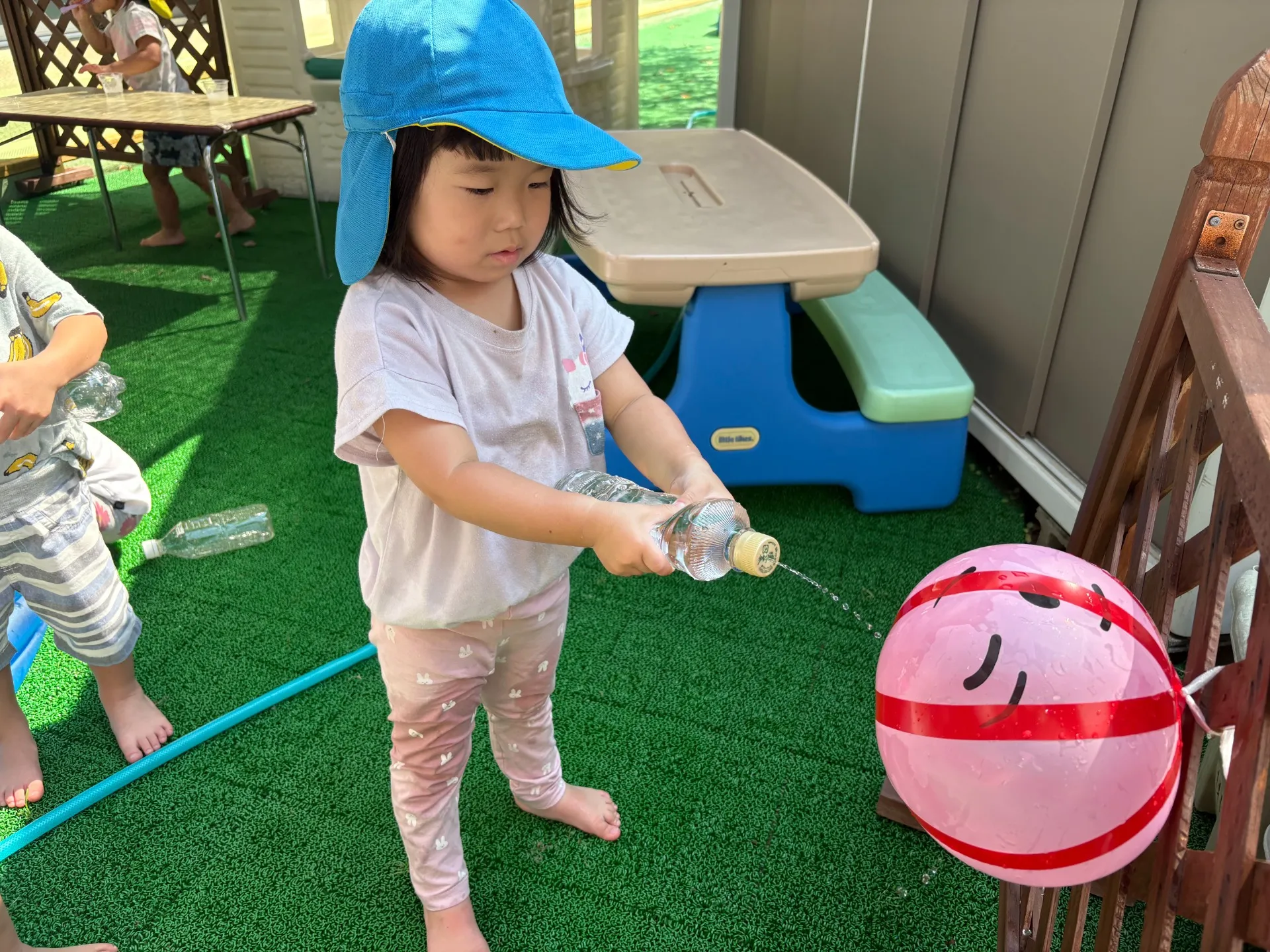 最後はペットボトルの水鉄砲で思いっきり遊びました!!