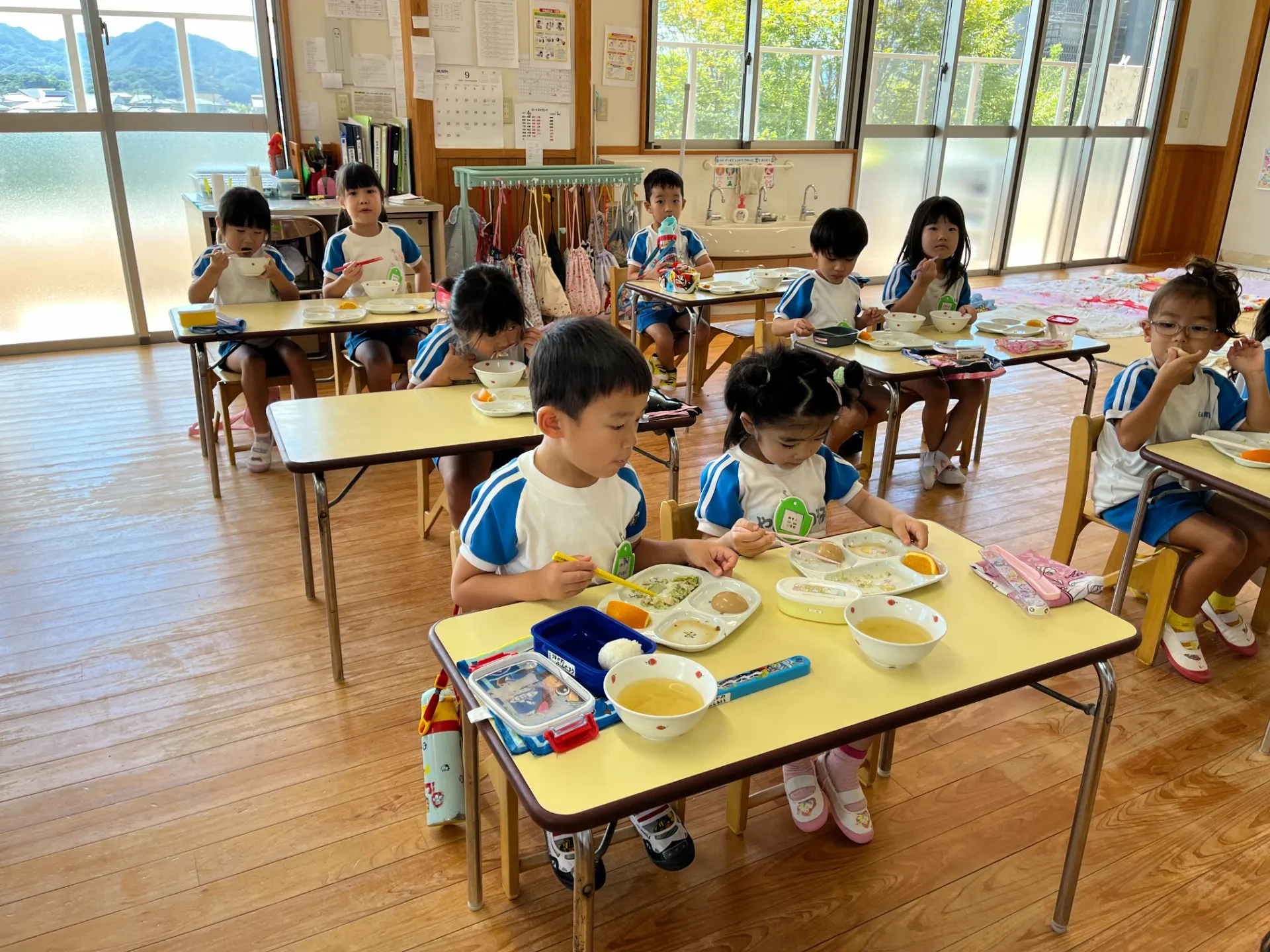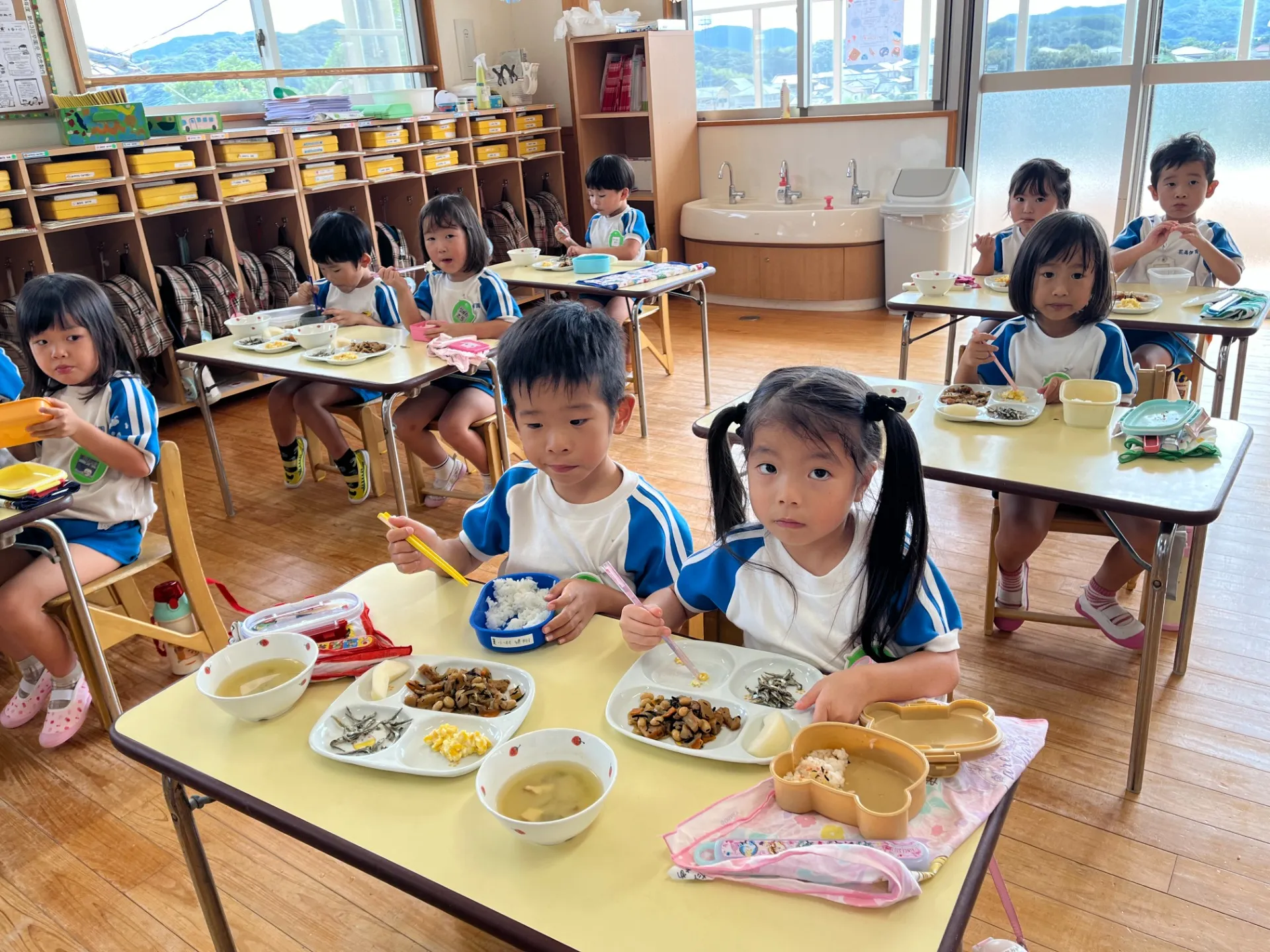 活動量が増え、最近はあちらこちらで「先生!おなか減った~」と言う声が聞こえるようになりました。「今日の給食は何かな?」と毎日の給食をとても楽しみにしているようです😊野菜嫌いだったお友達も大きな口を開けてパクリ😲‼みんな残さず完食できていて、おかわりをもらう子も増えています✨箸使いも上手になり、お皿に手を添えてマナーにも気を付けながら楽しく食事をしていますよ🍚食欲の秋…たくさん食べてみんなおおきくなーれ🎵