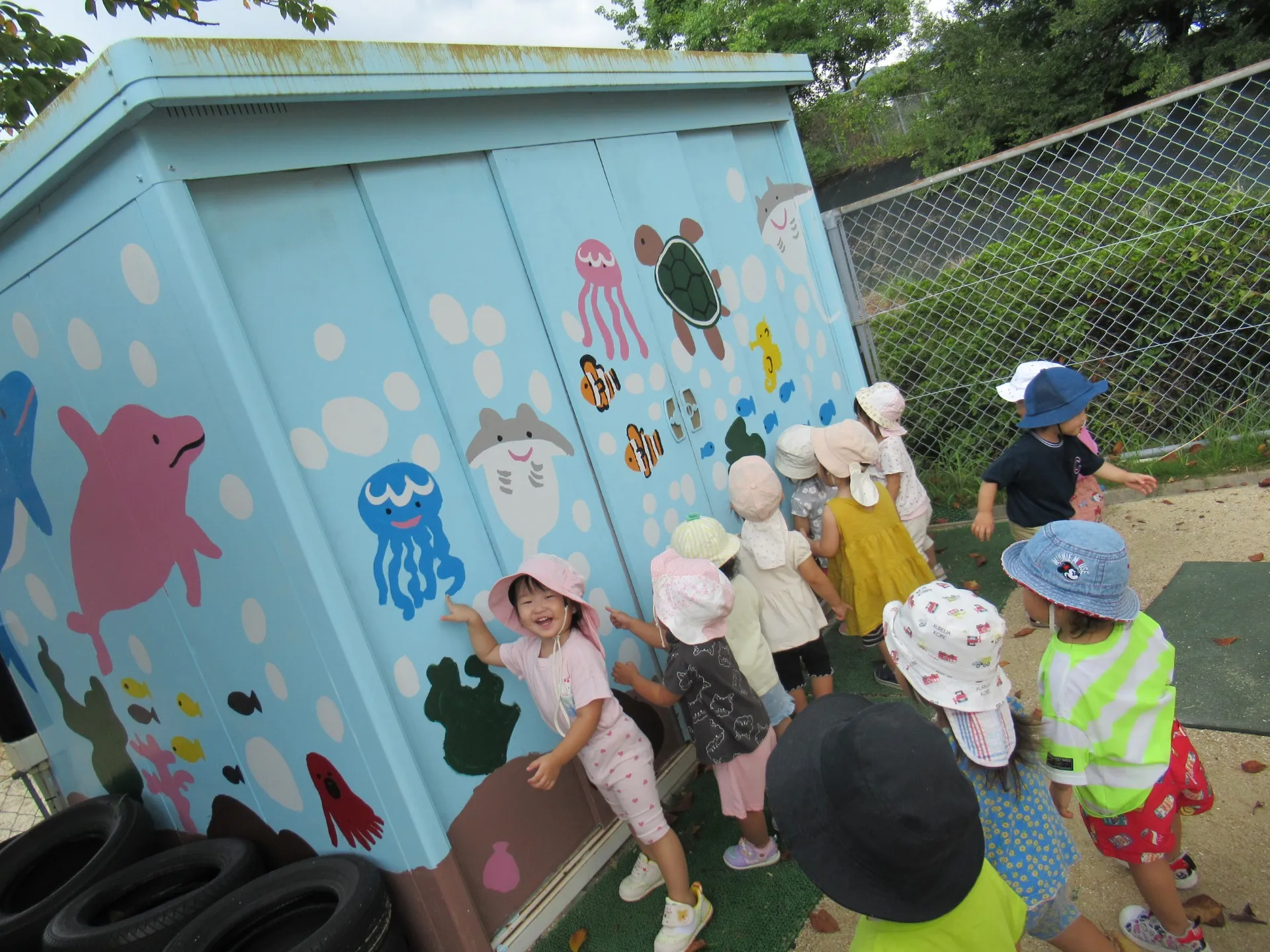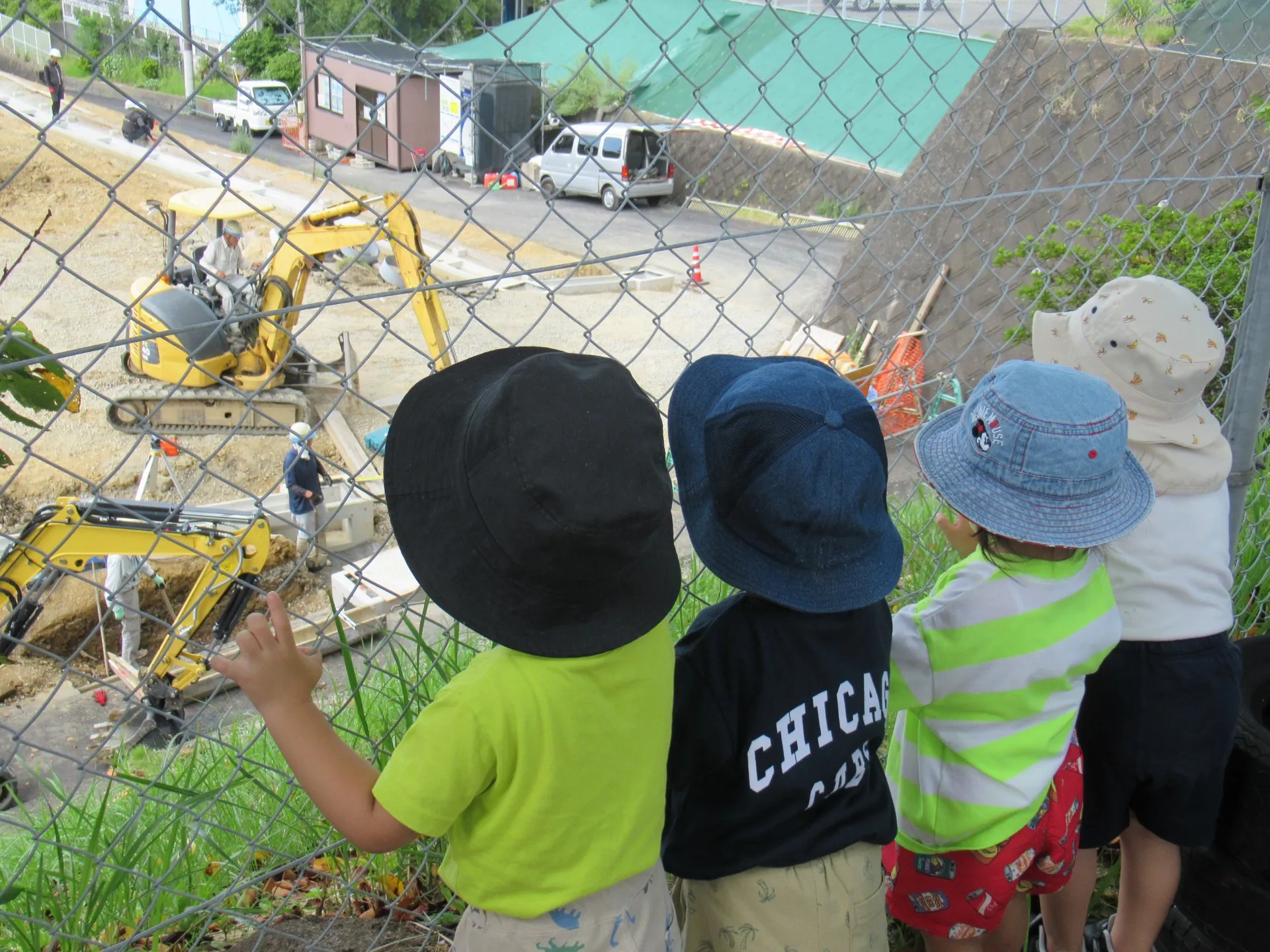 外へ出て散歩をしたすみれ大組。色付いた落ち葉を見つけて嬉しそうに見せてくれました。部屋まで大事そうに手に持ち持って帰るお友達もいました🍂(笑) 倉庫前では、魚にタッチしたり手を振ったりと小さな水族館にいるようでした🐠🐬 工事中で働くショベルカー👷を見つけると応援している姿もかわいかったです。天気がいい日には、また園庭に出てたくさん遊ぼうね![]()