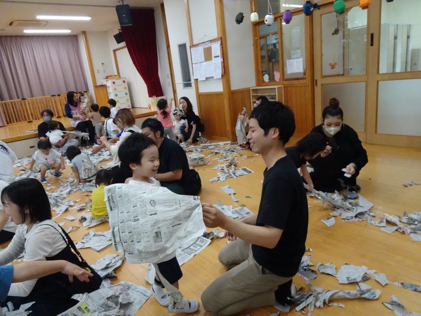 保護者の方と一緒に新聞遊びが出来て、とても喜んでいる姿を見ることが出来ました♪