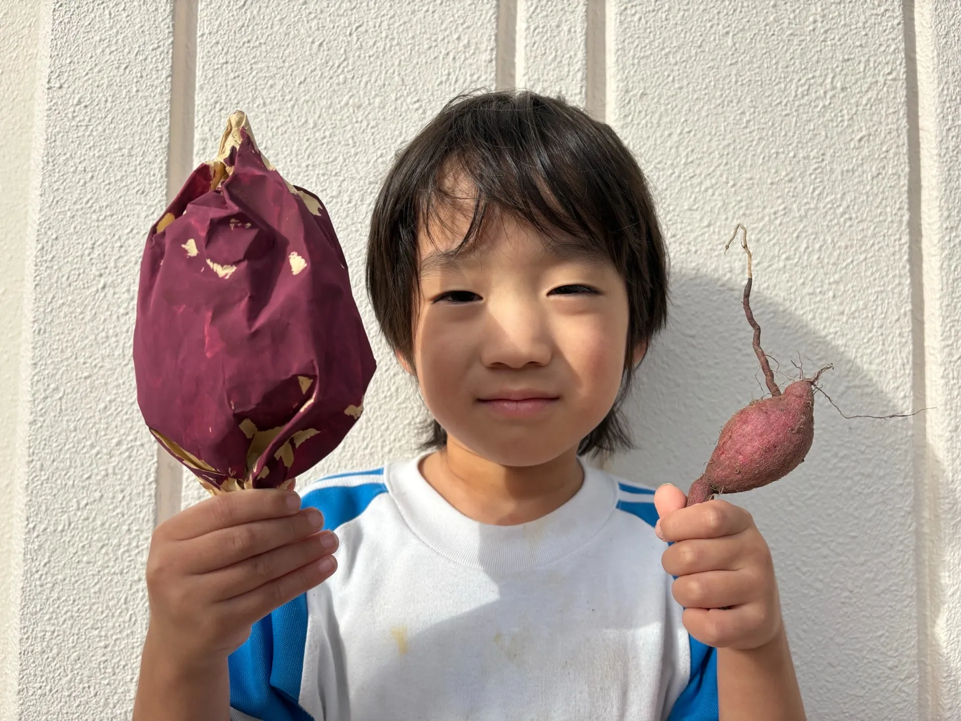 ばら組のみんなでお芋の製作をしました!茶封筒に新聞紙を詰めた後、絵の具で色を塗り、楽しんで取り組む姿が見られましたよ☆園庭に一つだけなっていた芋を見せてもらい、自分達の作った芋と見比べて「こっちが大きい!」と嬉しそうに話していた子どもたちです![]()