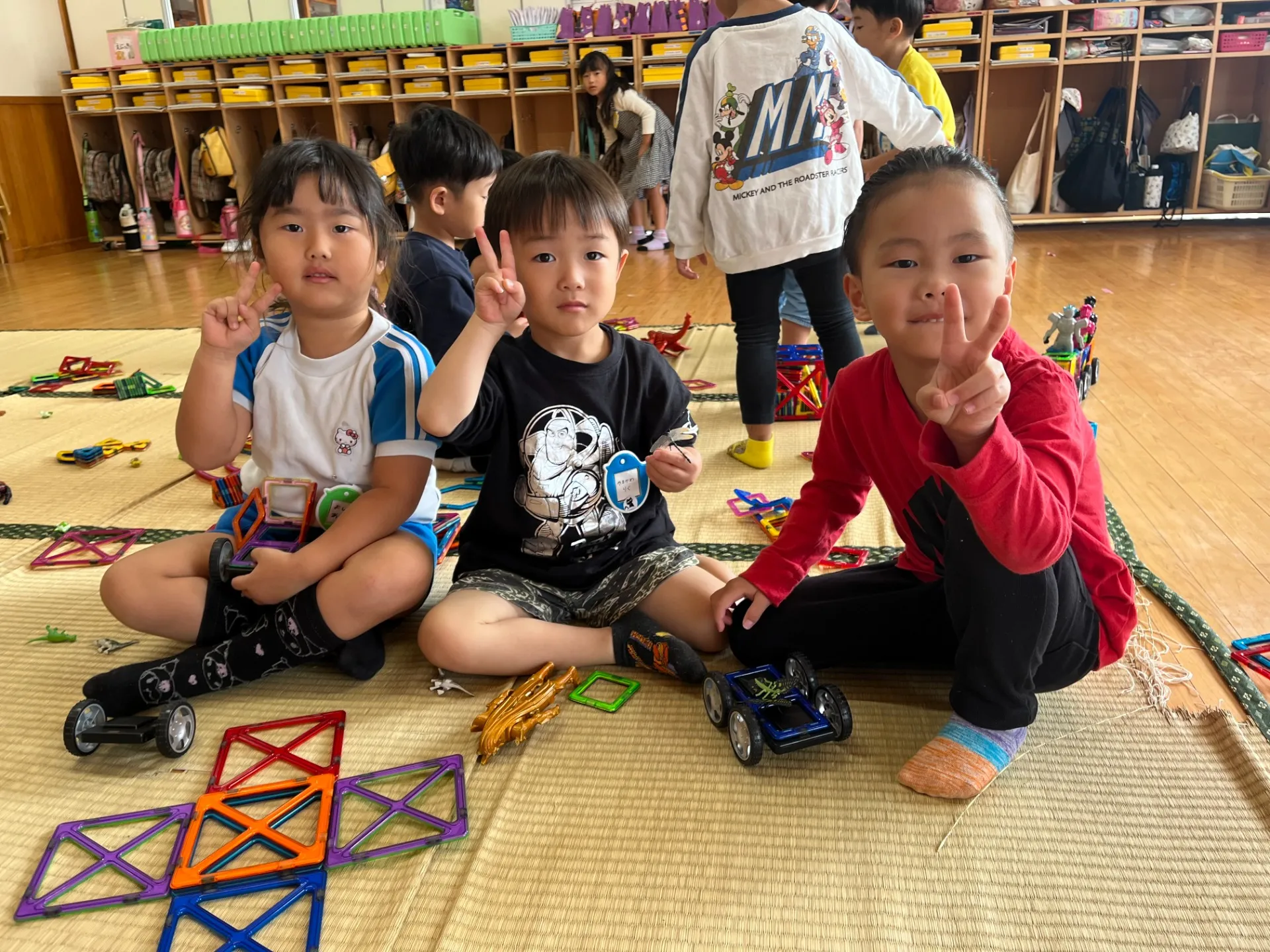 関わり合って遊べるのも嬉しい様子で、「貸してあげるよ!」「作ってあげようか?」と優しく声をかけたり、かっこいいお兄さんお姉さんの姿を見せながら楽しく過ごしています✨この日もみんな仲良く笑顔で遊んでいましたよ💖もうすぐお店屋さんごっこに向けた活動も始まります‼優しくお世話をしながらきっと活躍してくれることでしょう🎵