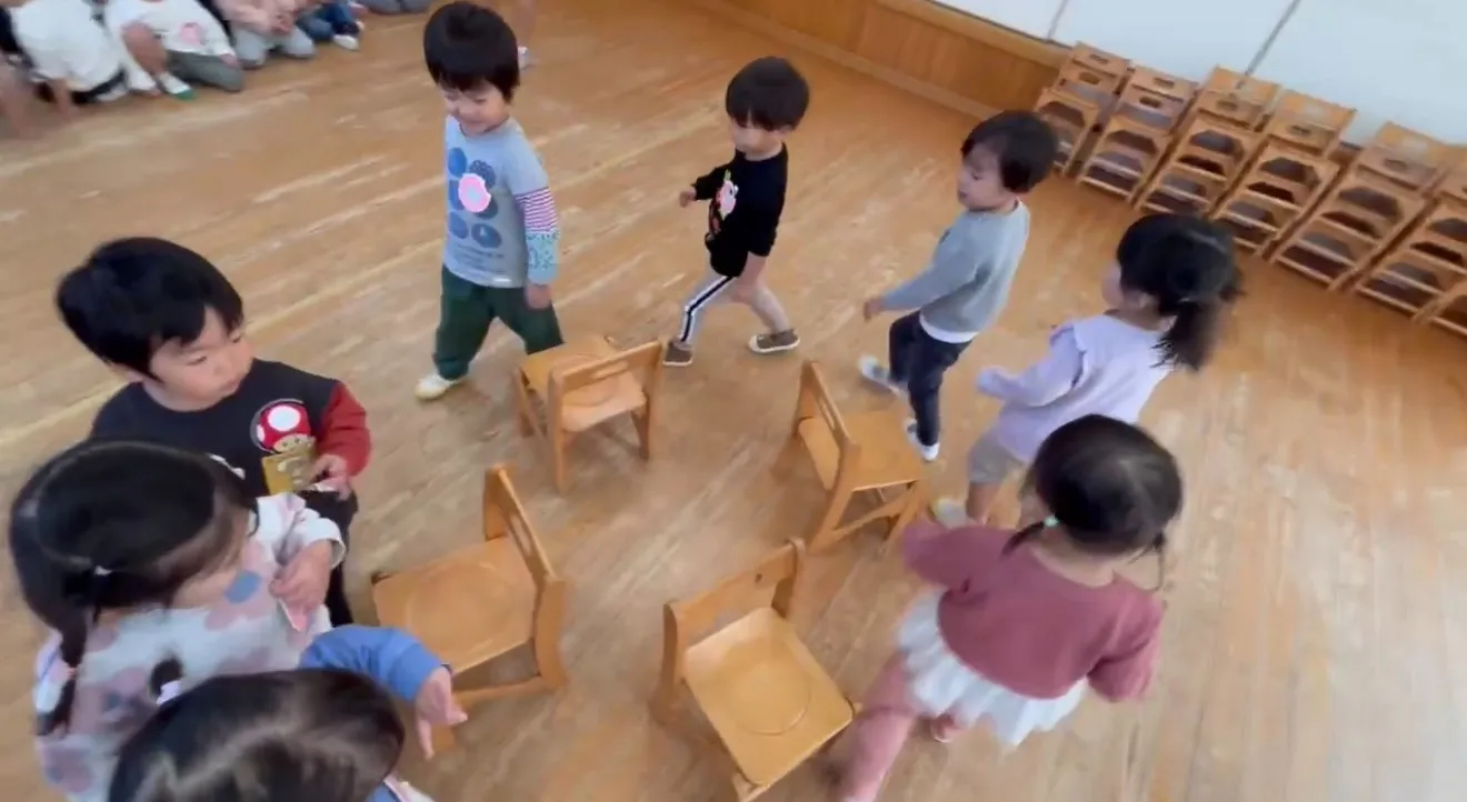 椅子取りゲームでは、泣く子もいましたが空いている椅子を見つけ、ルールを守って友達と一緒に楽しむ姿が見られました![]()