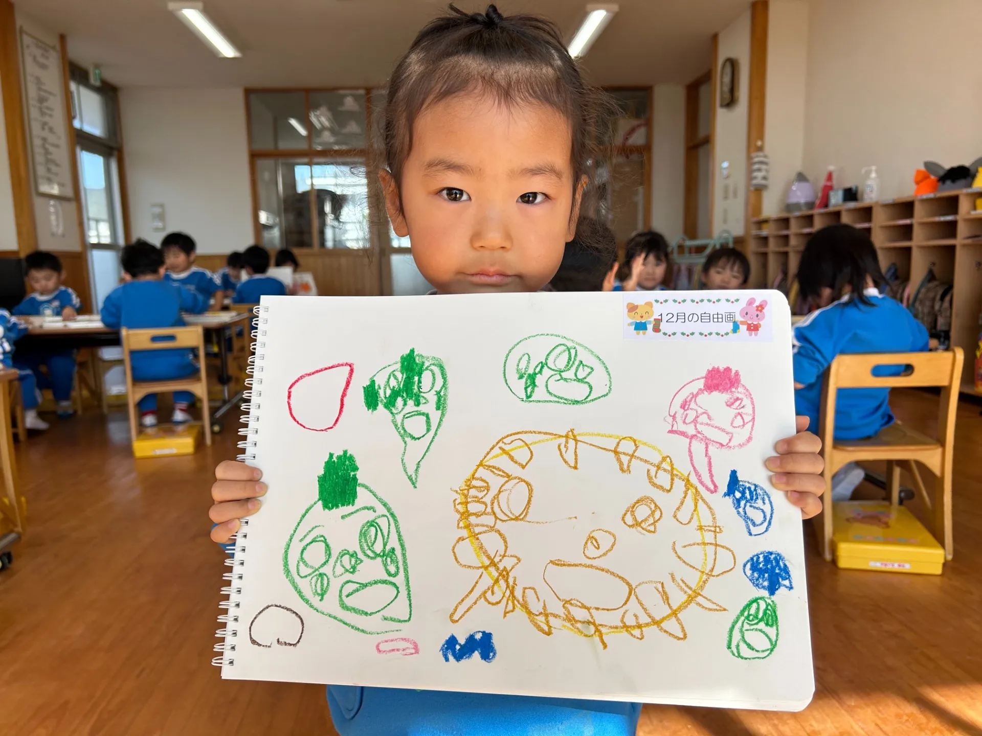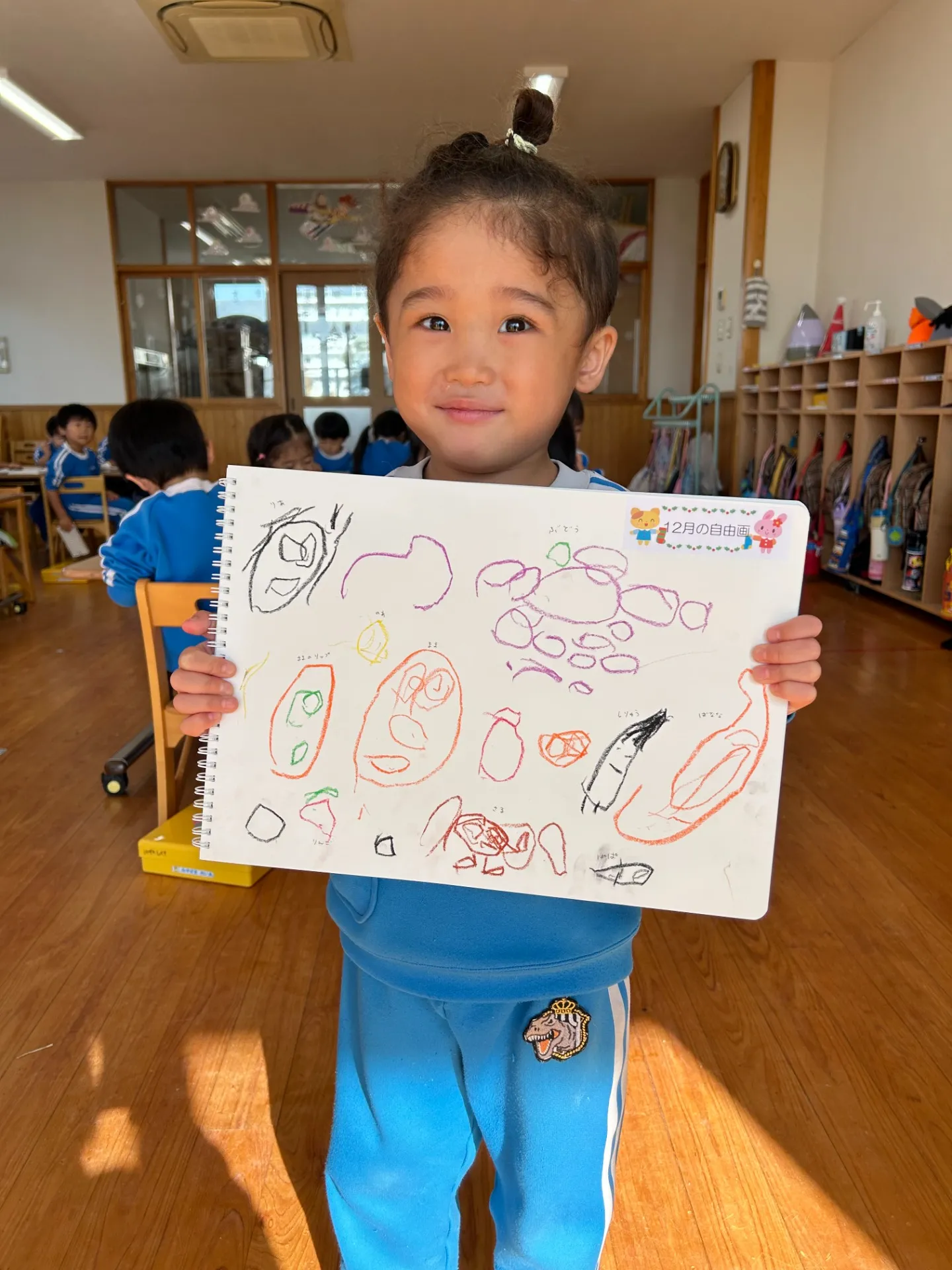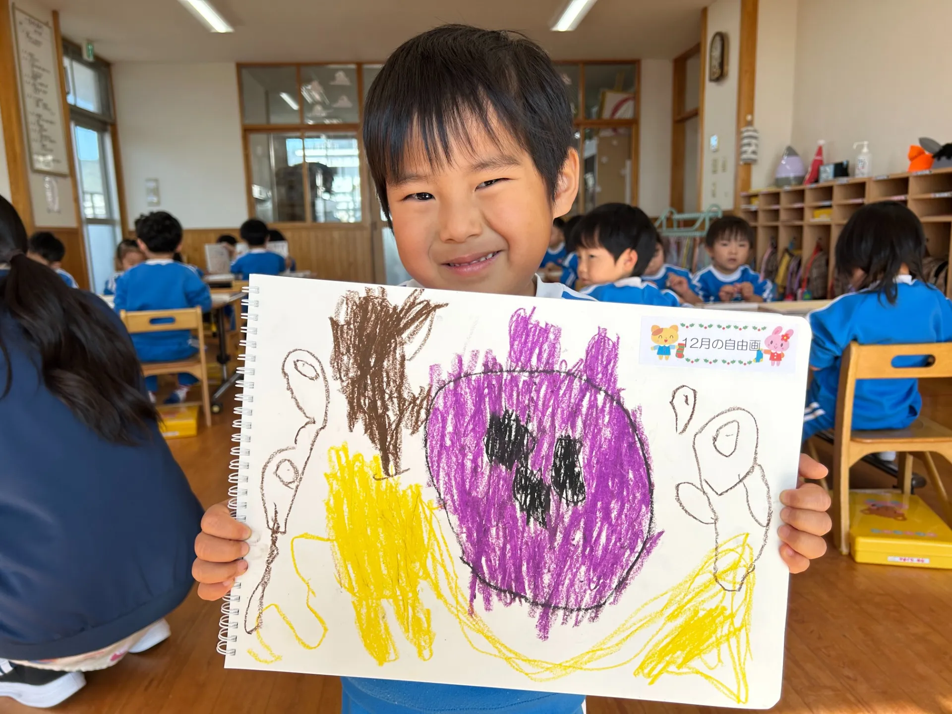 長い間練習に励んできたお遊戯会が終わりのんびりと過ごしているばら組さんです😊この日のお絵描きのテーマは「好きなもの」でした❤人や食べ物や玩具や…好きなものなんでも描いてみよう!ということでばら組さんは「ママとパパ」「にーに、ねーね」「仮面ライダー」など好きなものを思い思いに描いていましたよ![]()
