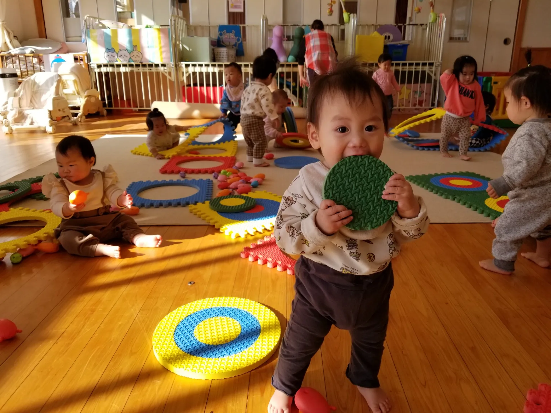 久しぶりに会うと、いきなりヨチヨチと歩いたり、おしゃべりが上手になってたり、給食も自分で食べたり・・・びっくりの連続です。皆、お友だちと会えて嬉しそうです✨