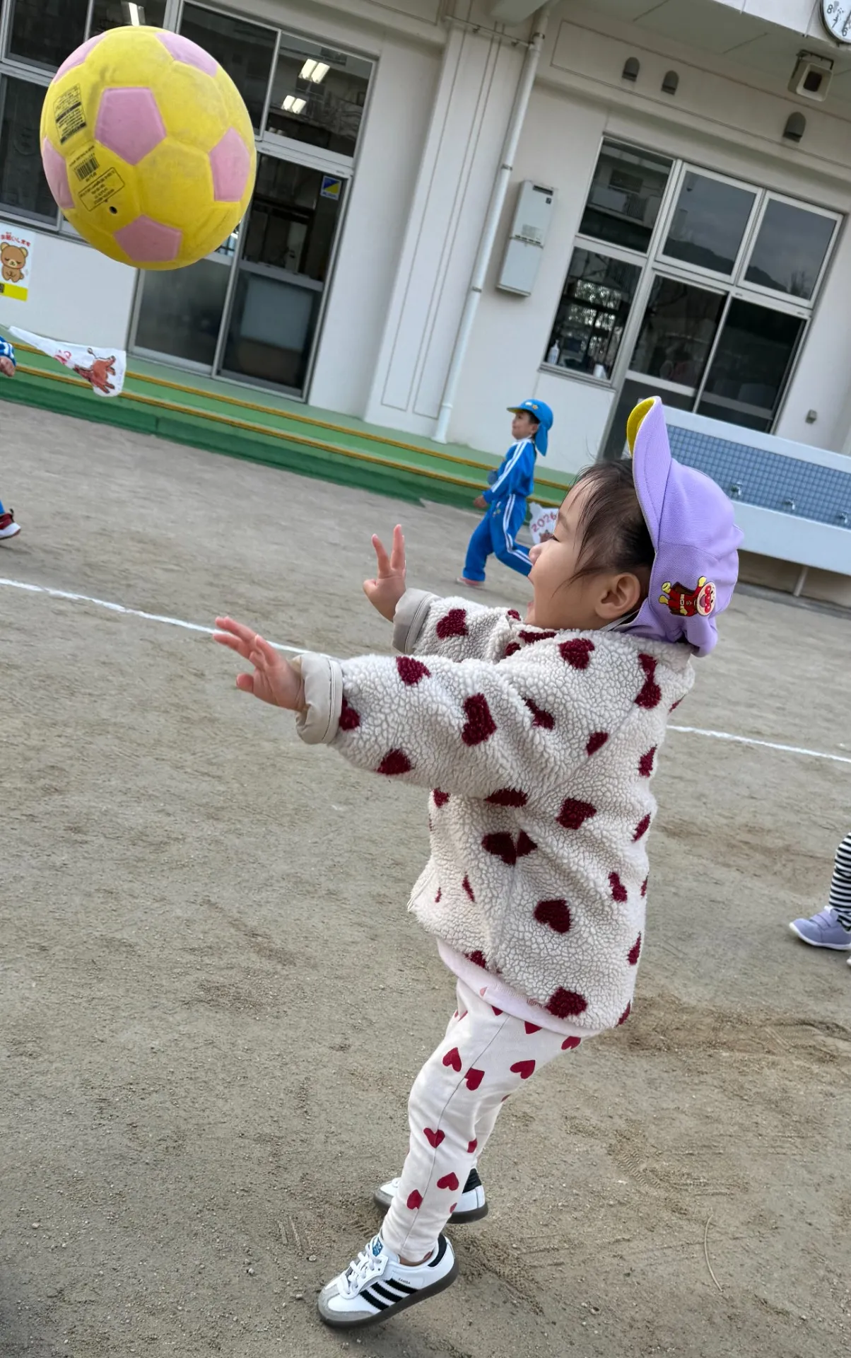 ボールを両手でポーン!と投げたり、力強くキック!!