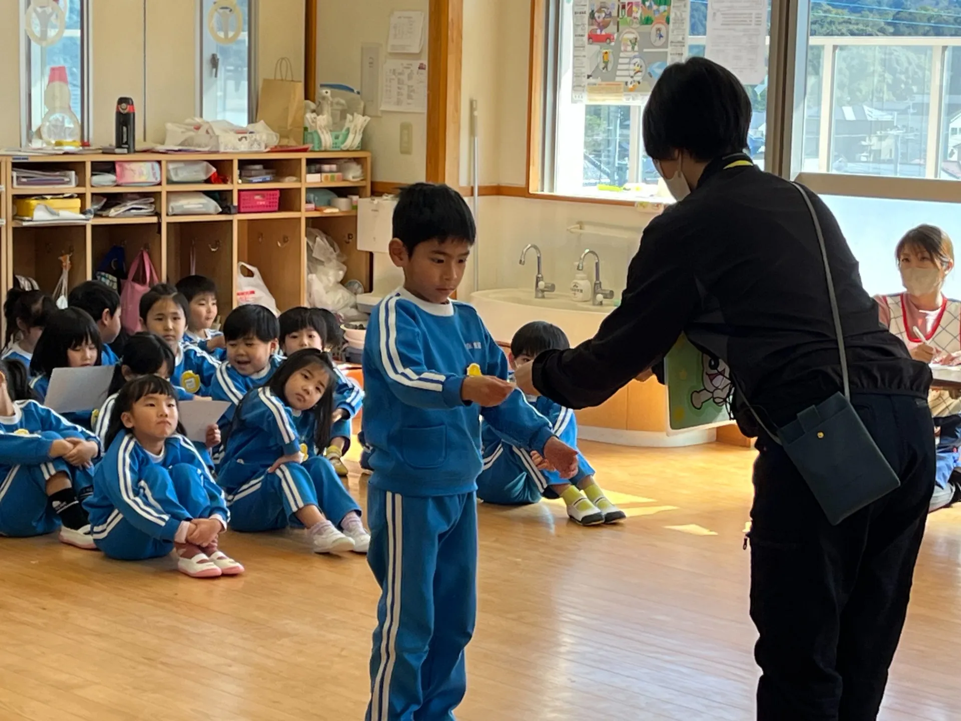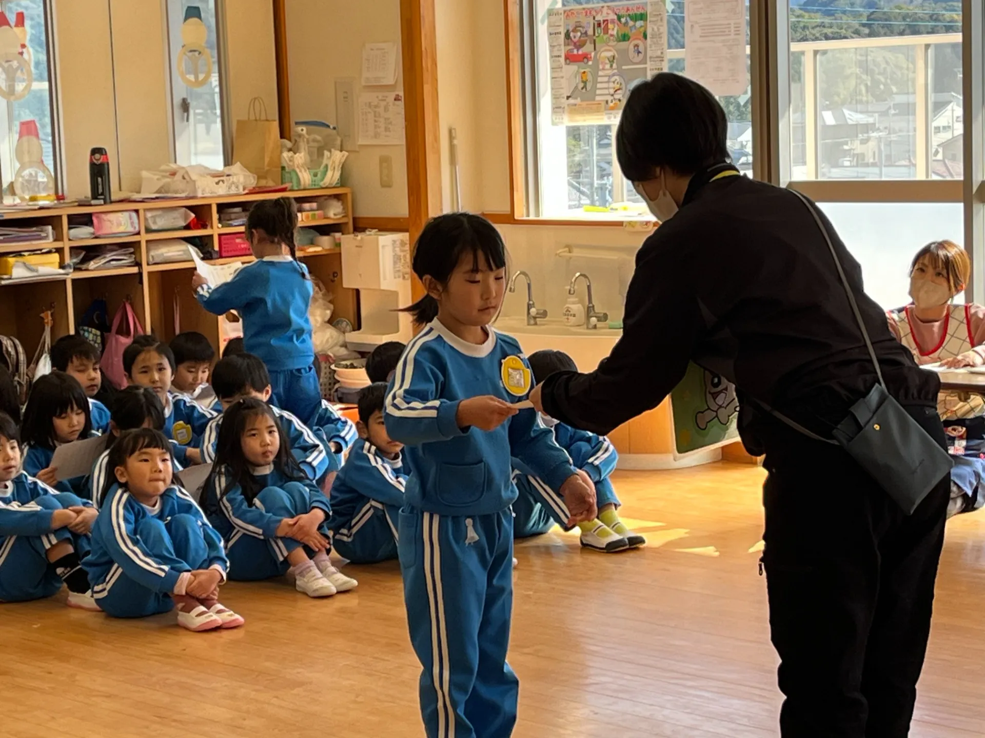 A組・B組さんが参観して、今年度最後の交通安全教室が行われました🚥パネルシアターや実際の横断歩道を想定した練習を取り入れながら、歩道の歩き方や横断歩道・踏み切りの渡り方を学びました🚘たくさんお勉強してきたA組さんは、最後に一人ひとり修了証を受け取り、誇らしげにお友達と見せ合っていました✨4月からは交通ルールをしっかり守り、元気に小学校に通ってくれることと思います😊