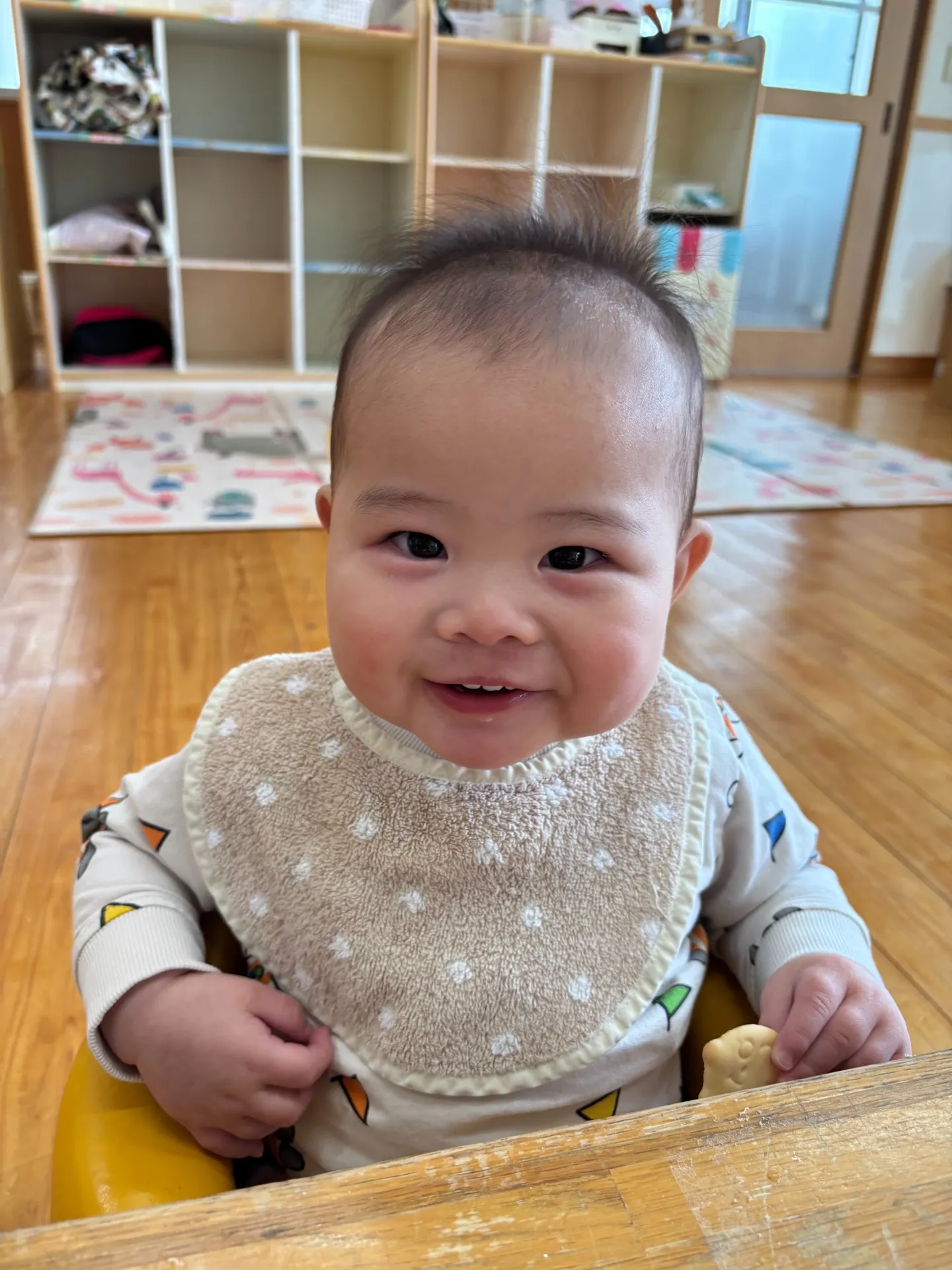 ご入園おめでとうございます。小さな小さな生後2か月のお友だちと生後9ヶ月そして今月1歳になる女の子が入所してきました。日に日にお部屋にも慣れ、おもちゃで遊んだり、あやすと笑顔で応えてくれたりととってもかわいいです。毎日女子会です(o゚▽゚)oミルクや食事もしっかりとれて元気いっぱいです。たくさん関わりながら安心して過ごせるようにしていきたいと思います。