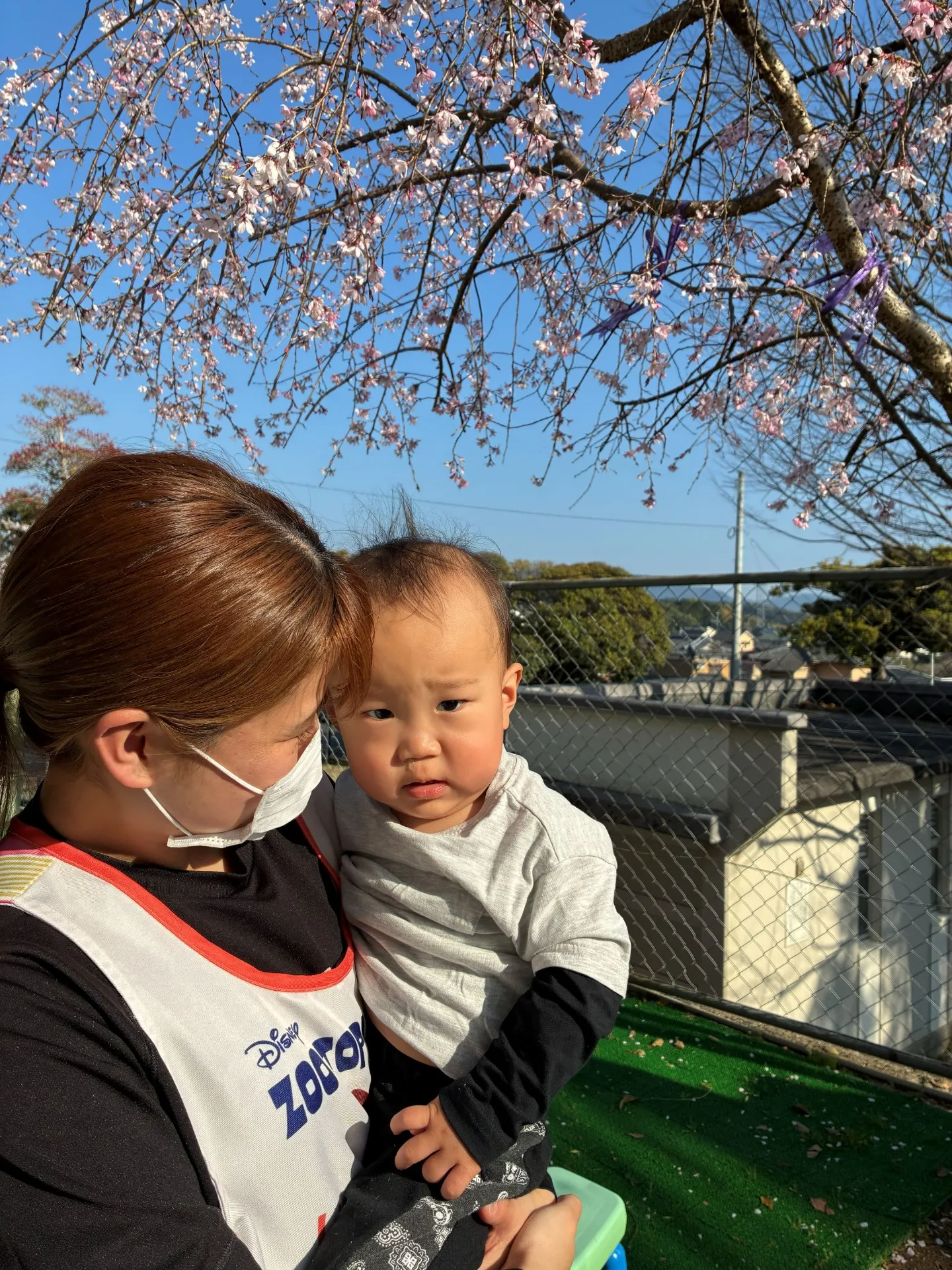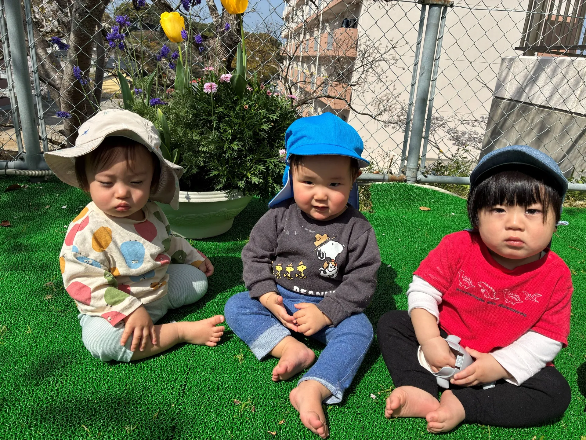 9人の新しいお友だちが入り、泣いたり笑ったりとても賑やかですよ🤗桜やチューリップのお花が見えるお外に出てみると泣いていたお友だちもちょっぴりご機嫌になりました。これから楽しく過ごしていきましょうネ🎵