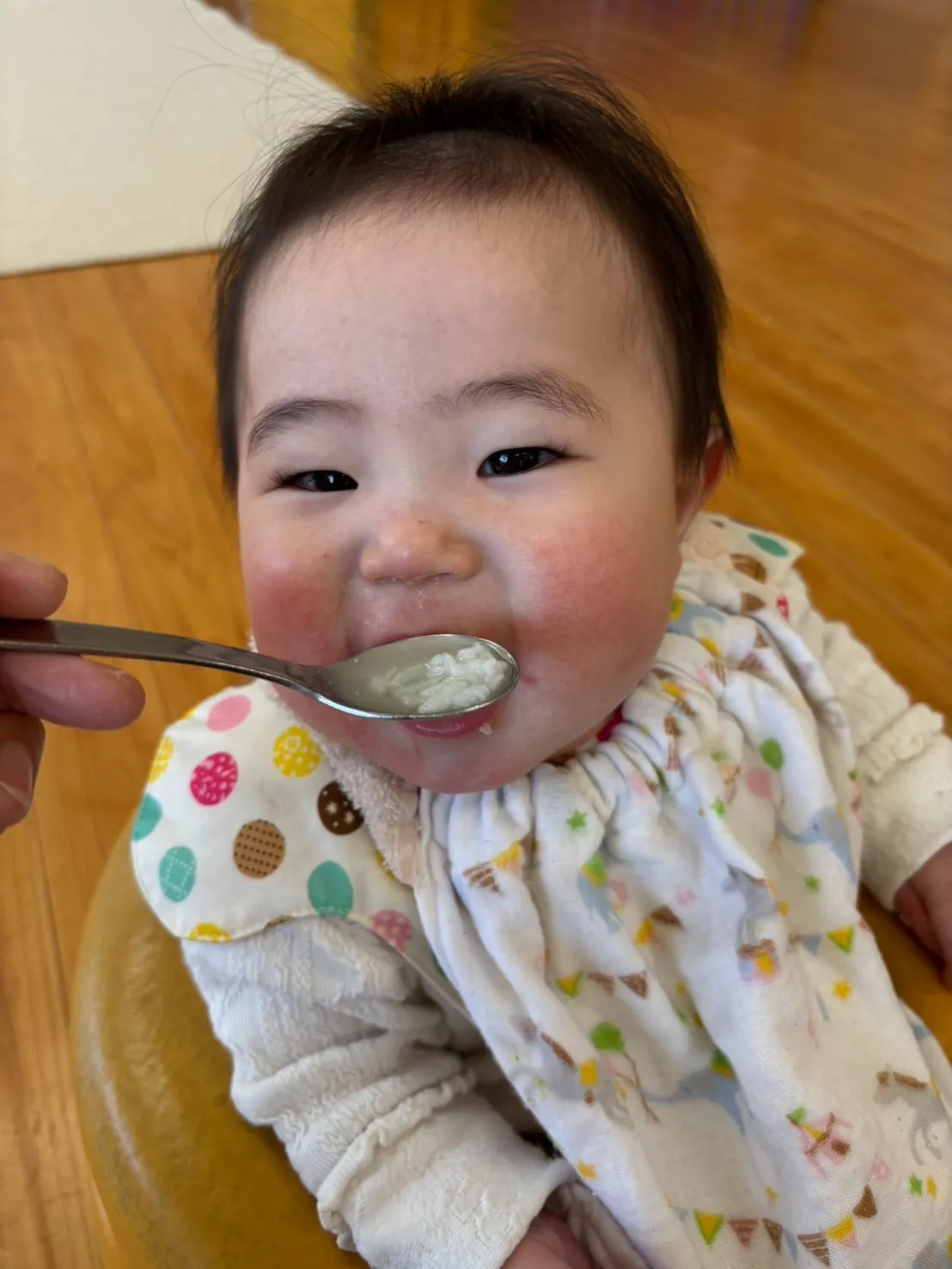 今回はおいしそうに食べてくれている食事の様子をお届けします。ミルクもおやつも離乳食も毎日完食です。