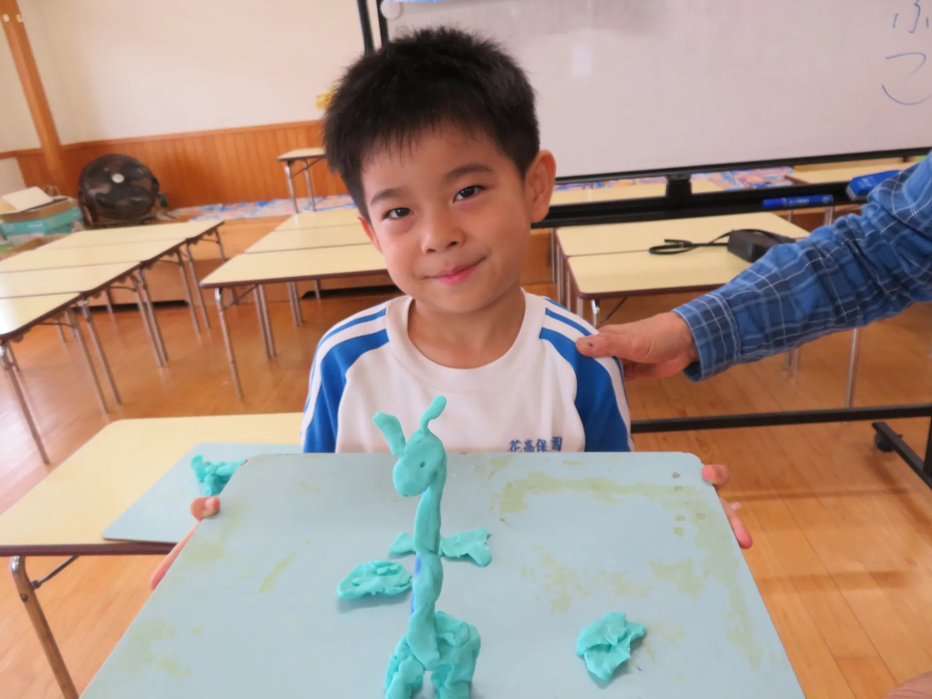 絵の教室で粘土で動物を作りました足から作り、身体・顔のパーツといつもの粘土遊びとは違い立体的な作り方を教わる事ができ、普段とは違うリアルな動物を作る事が出来ましたまた今度の粘土遊びの時に自…