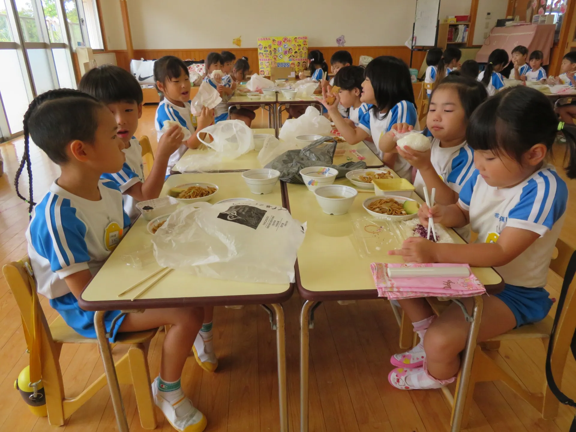 給食はグループごとに食事をしましたいつもと違うお弁当箱やお箸でちょっぴりウキウキなA組さんでしたそして、今日のおやつはアイスクリームコーンに一人ずつ作ってもらい、園長先生にお礼を言って嬉しそ…