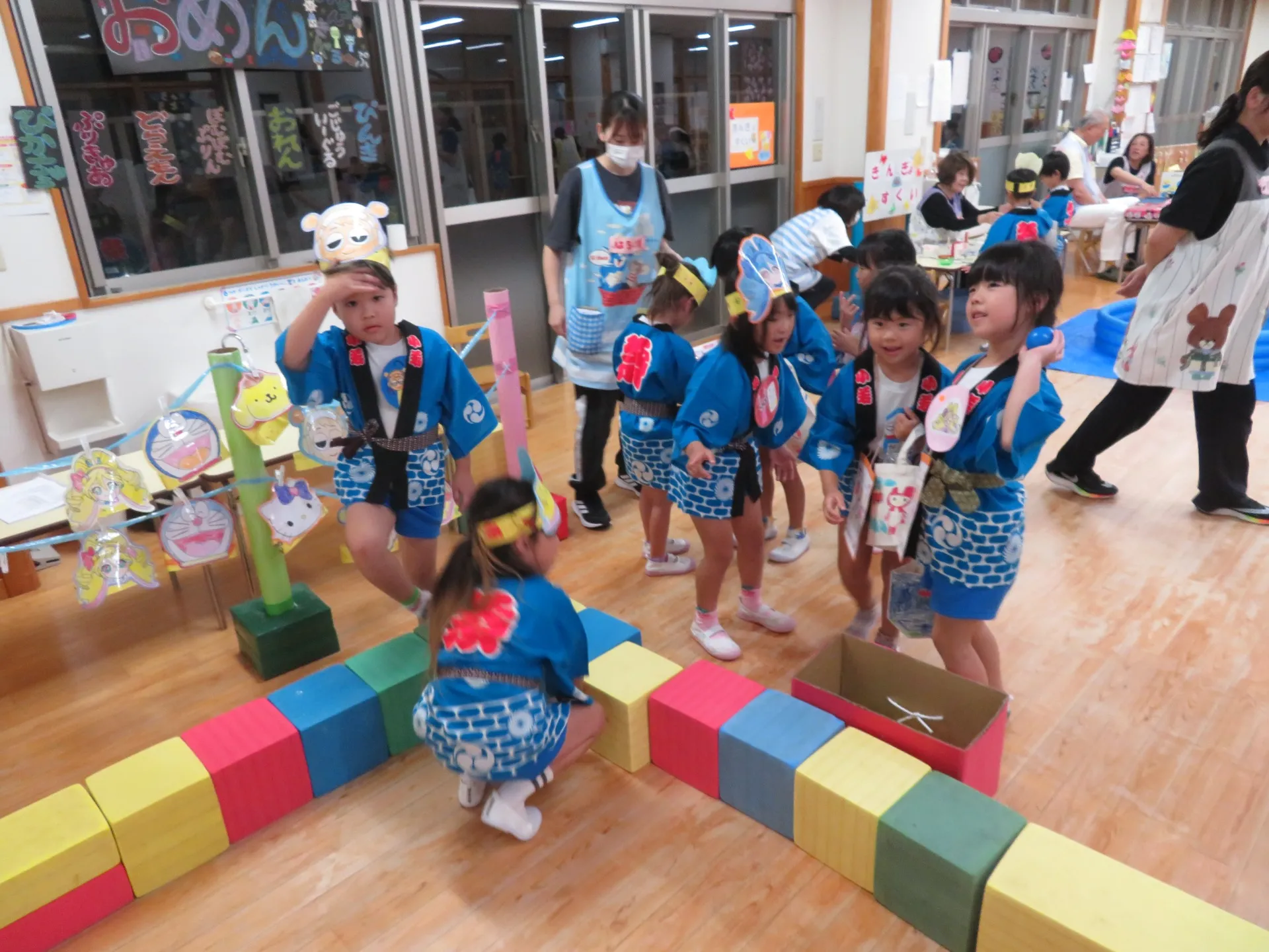 みんなが楽しみにしていた、縁日がありましたうちわ屋さん、飲み物屋さん、おめん屋さん、クレープ屋さん、くじびき、金魚すくい、ヨーヨーつりがあり、どれも、興味津々でした1番人気は、くじびきでし…