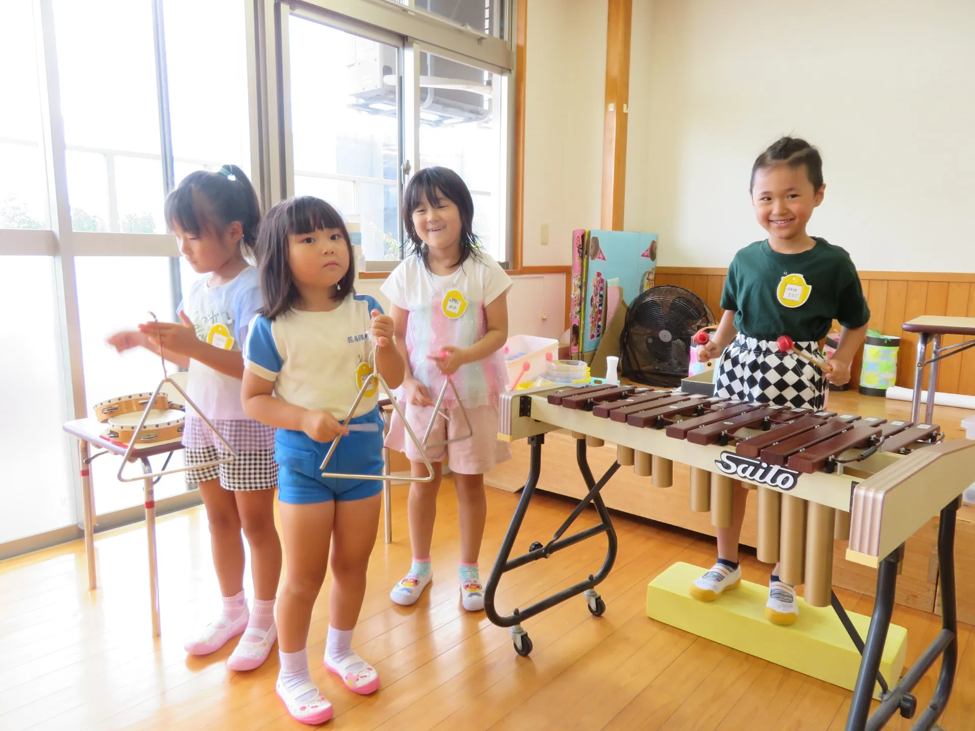 最近は朝から涼しく感じる事も多くなった来ましたね♪A組さんでは、楽器にたくさん触れようと言うことで、木琴・鉄琴・トライアングル・ウッドブロック・カスタネット・タンバリンを出して、好きな楽器を…