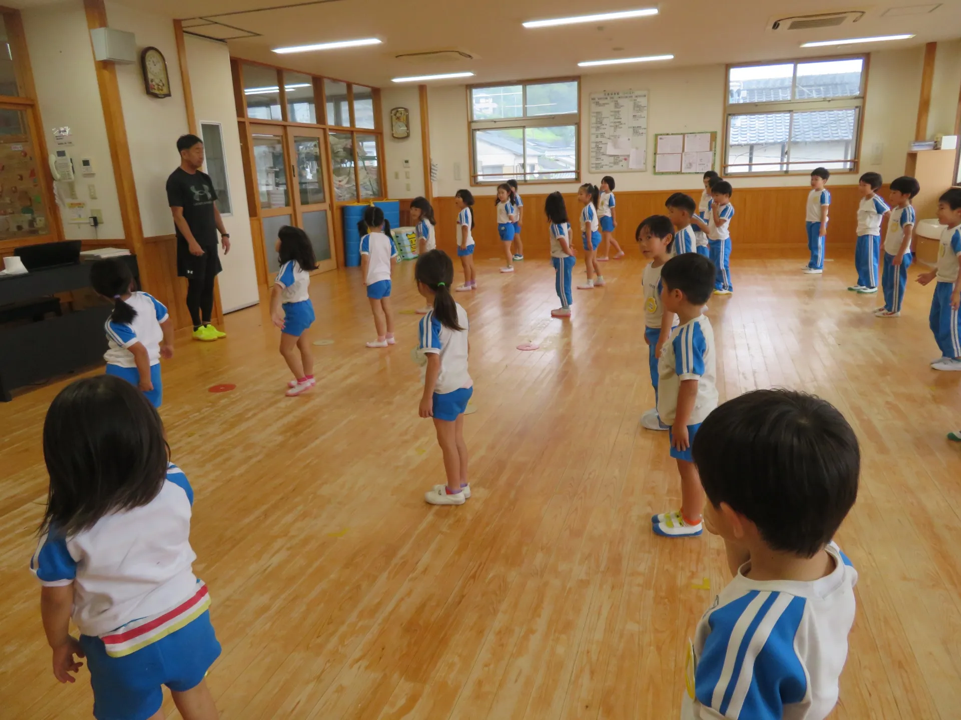 がんばったね✨親子運動会①✨ 8月4日(金)に親子運動会が東部スポーツ体育館で行われました。広くて新しい場所で楽しんでお家の方と参加しました。すみれ小組の親子競技「うみのおさんぽ」では、潜水艦に乗って出発です。お気に入りの…
